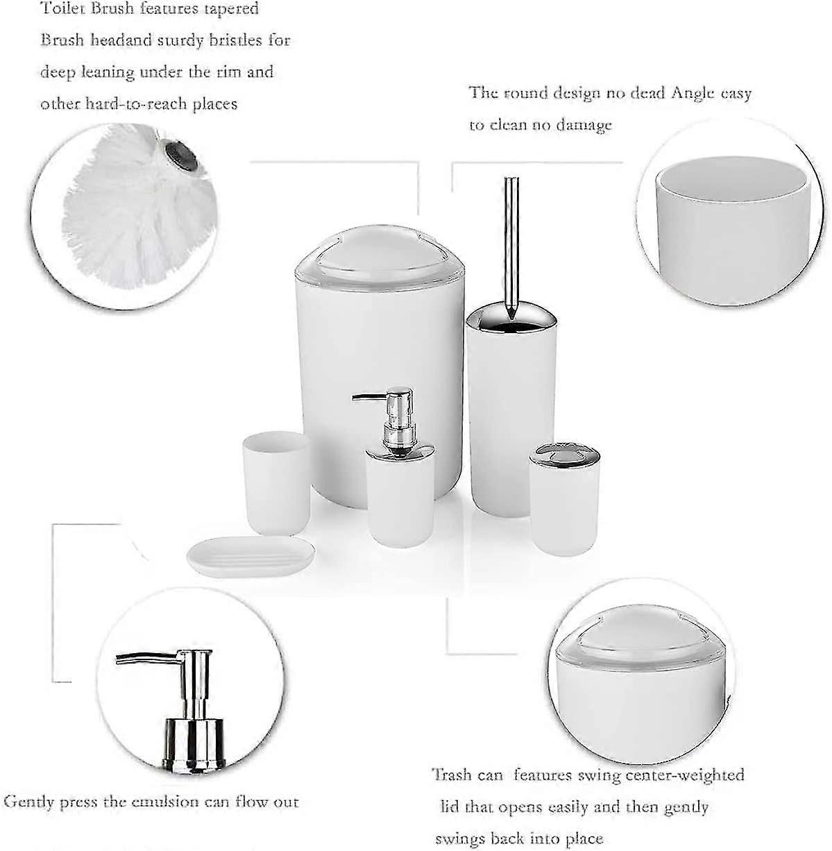 6 Pieces | Bathroom Accessories Set | Plastic Bathroom Accessories | Toothbrush Holder, Rinse Cup, Soap Dish, Hand Sanitizer Bottle, Waste Bin, Toilet