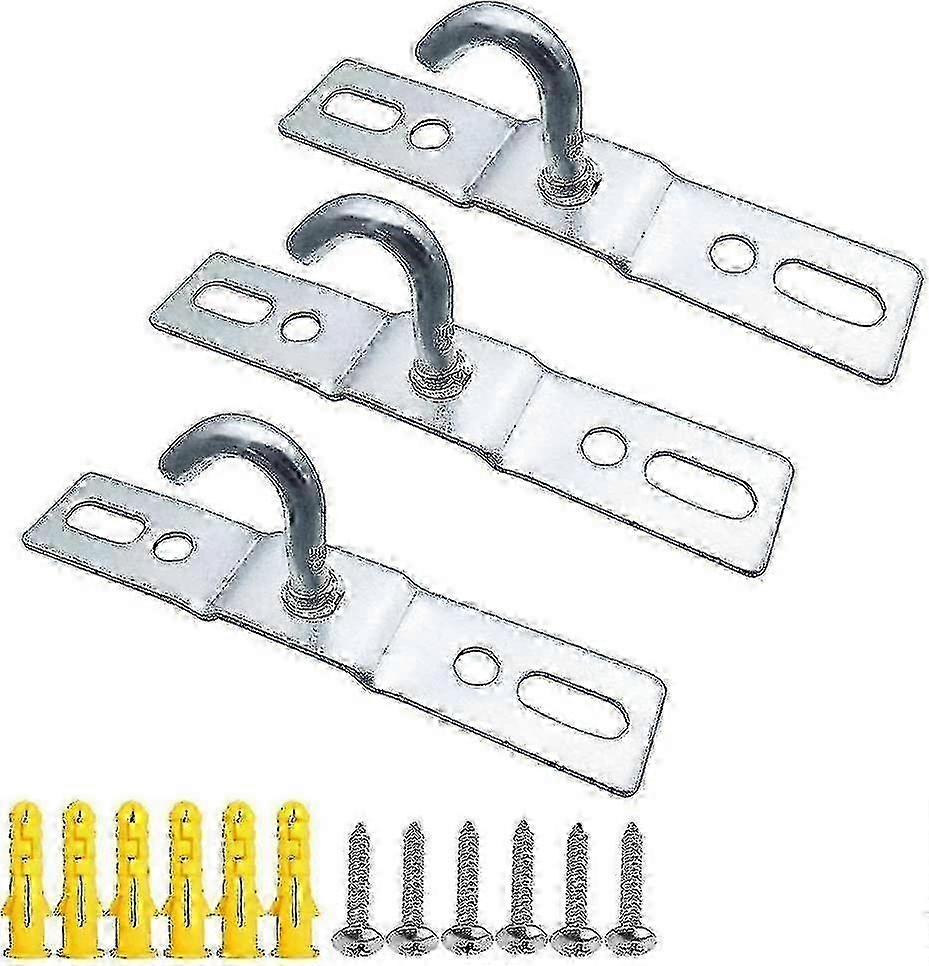 6 Pieces Ceiling Hook 95mm Ceiling Light Base Plate Ceiling Chandelier Hook Screw Mount Heavy Duty Galvanized Iron For European Lamp Ceiling Fans Flow f26 MaterialThe chandelier hooks are made of iron, using high-quality electroplating process, the surface is electroplated, smooth, rustless, corrosion-resistant, stable and durable. DimensionsThe rectangular base plate measures 95x18mm, two oval screw holes of 13.8x5.8mm and two round holes of 5.6mm in diameter and an overall height of 34.6mm.Strong Load CapacityThe load capacity of the utility hooks heavy is very strong.Package6 Galvanized iron ceiling plate lighting hooks.Application- Mainly used for hanging large crystal lamps, chandeliers and other lamps. It can also be used to hang ceiling fans, plant baskets, lanterns, birdcages and other heavy objects. [Dimension]: Total height: 34.6 mm Rectangular bottom plate: 95 x 18 mmOval screw hole: 13.8 x 5.8 mm Distance between 2 oval holes: 74 mm Round hole diameter: 5.6 mm Hook thickness: 5.4 mm [Package]: 3 x Galvanized iron ceiling plate lighting hooks This lighting accessory allows you to attach your lamp or chandelier to the ceiling and is often omitted from the purchase kit. Attach this iron lamp hook to the ceiling to support your light.This lightweight hook is very easy to install.This mounting hook can be used in many places and is widely used in domestic and industrial areas . It can be used for chandeliers, crystal lamps, DIY light fixtures, ceiling fans, plant baskets, lanterns, birdcages and other heavy objects. Note: Due to the light and screen setting difference, the item's color may be slightly different from the pictures. Please allow slight dimension difference due to different manual measurement.
