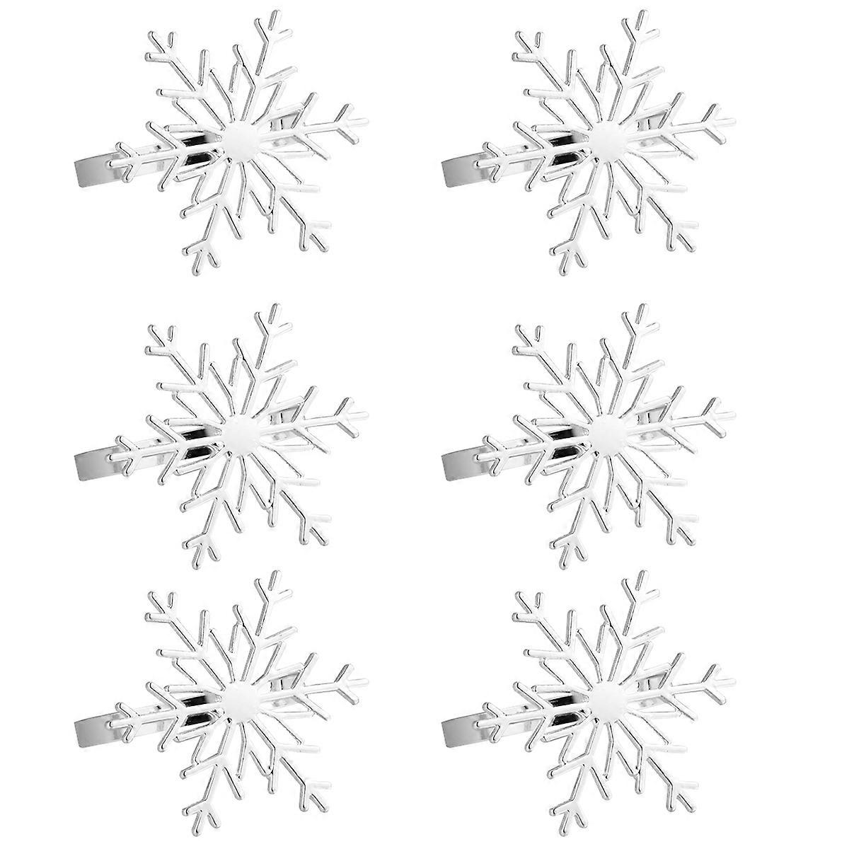 6pcs Silver Snowflake Napkin Clips – Elegant Christmas Tissue Buckles for Parties, Cafes & Home Decor – Heat Resistant Napkin Holders for Festive