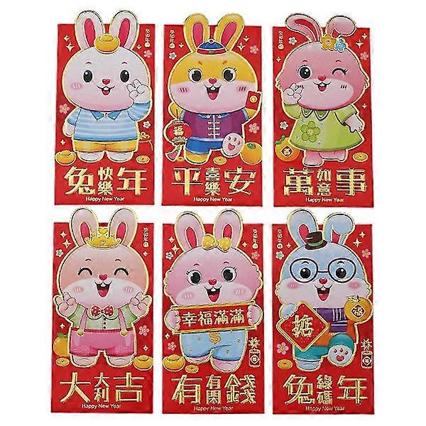6pcs 2023 Chinese Rabbit Year Festival Hongbao 3d Cartoon Red Envelopes Money 3204