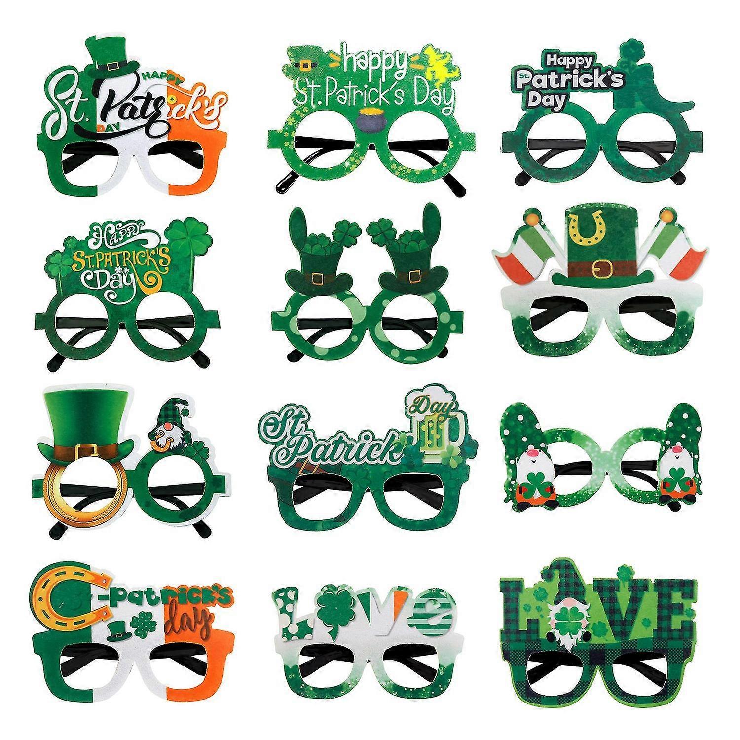 6/12Pcs St. Patrick's Day Party Glasses Green Shamrock Bear Cup Hat Gnome Eyeglasses Eyewear Photo P