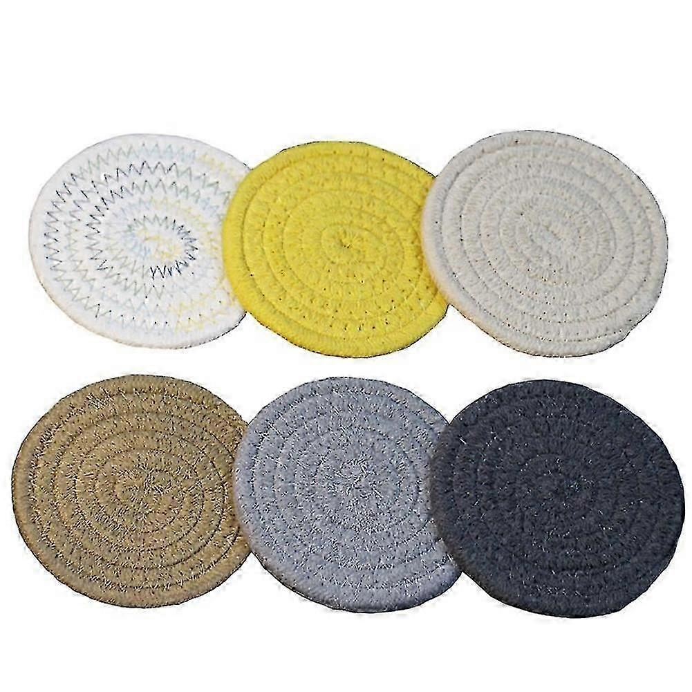 Set of 6 4.3 Inch Absorbent Drink Coasters, Handmade Braided Drink Coasters, Heat-Resistant Coaster