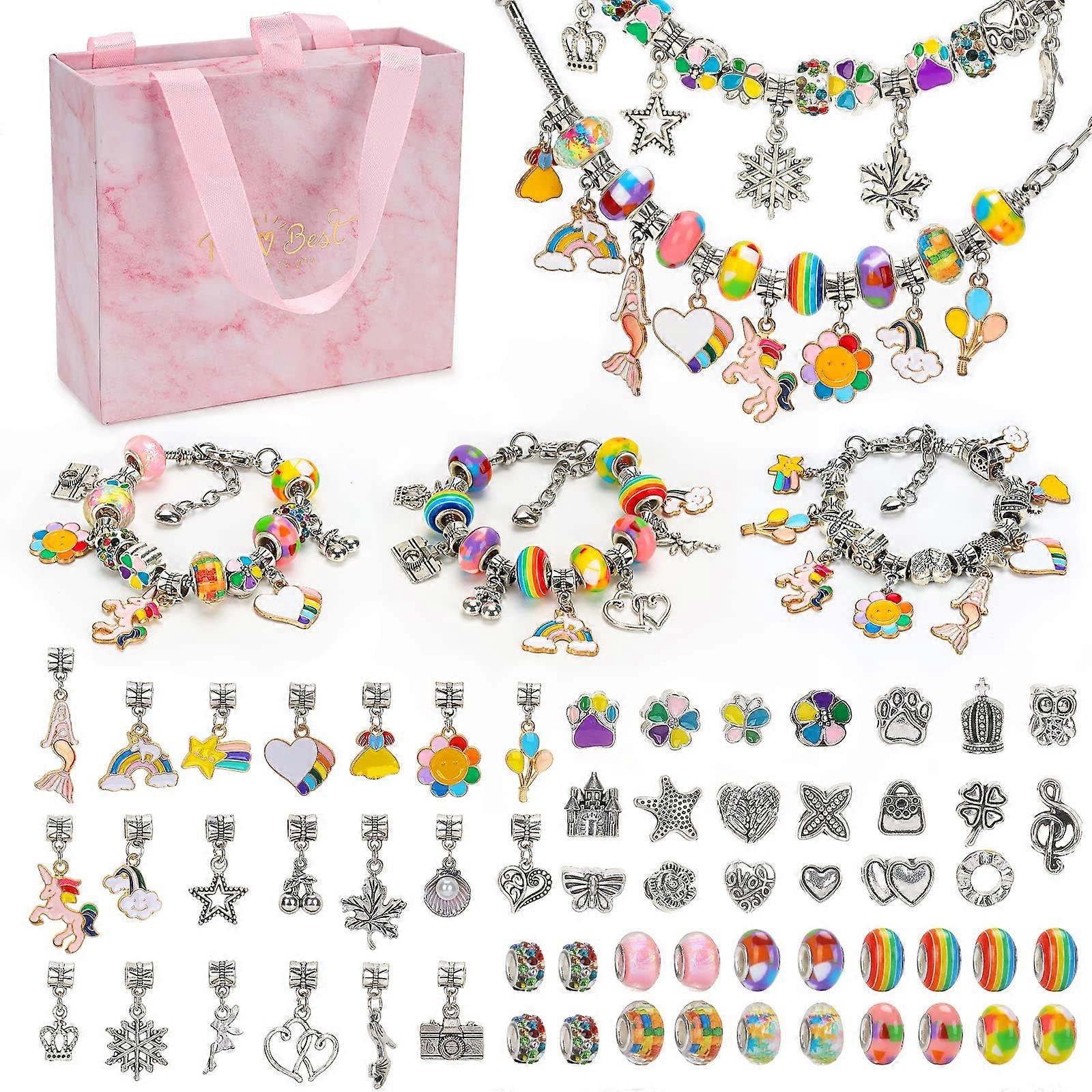 Girls Gifts for 6 7 8 9 10 Year Old, Kids DIY Arts Crafts Set for Girl Age 5-11 Birthday Gift Charm Bracelet Making Kits