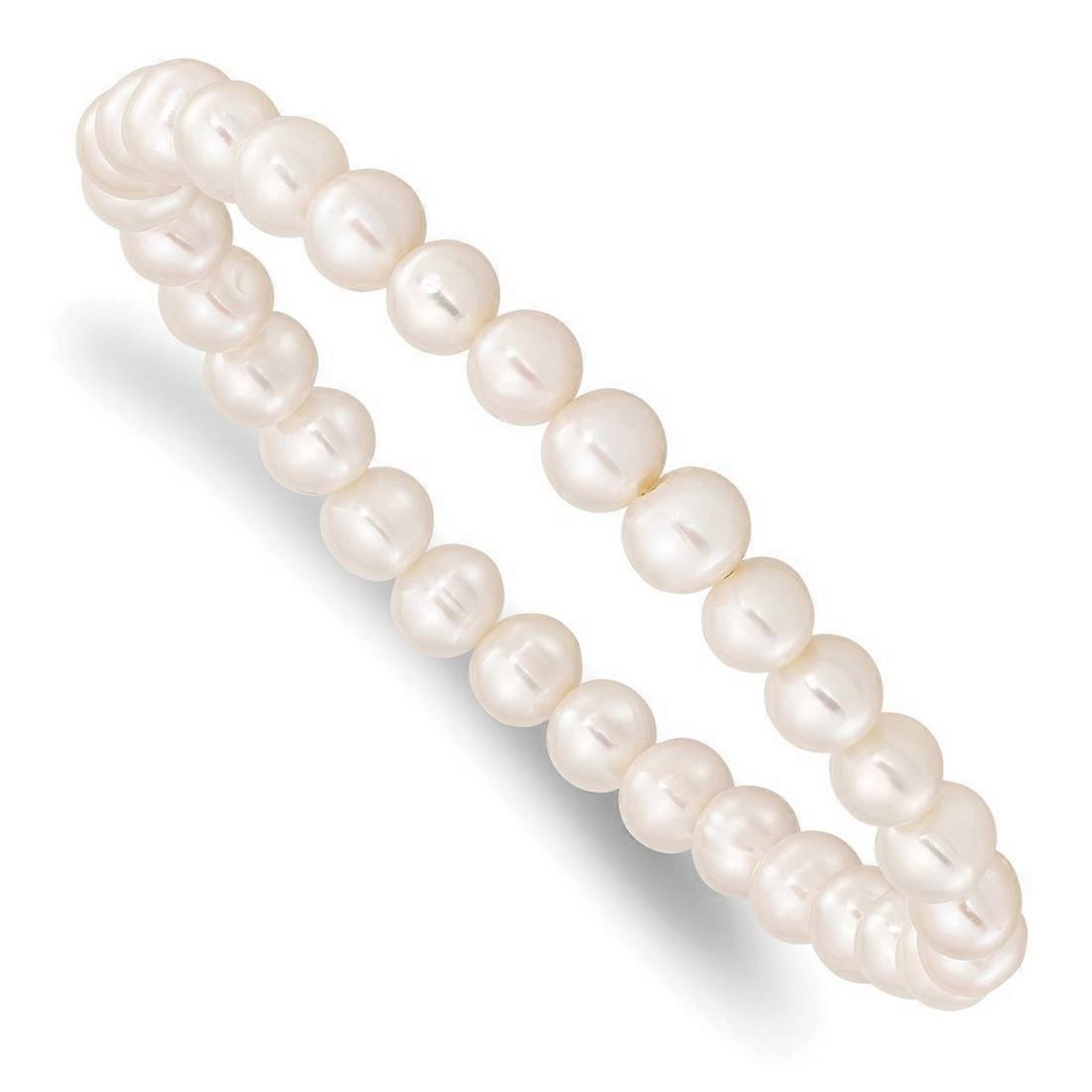 6 7mm White Semi round Freshwater Cultured Pearl Stretch Bracelet-Stretch-Bracelet for Women
