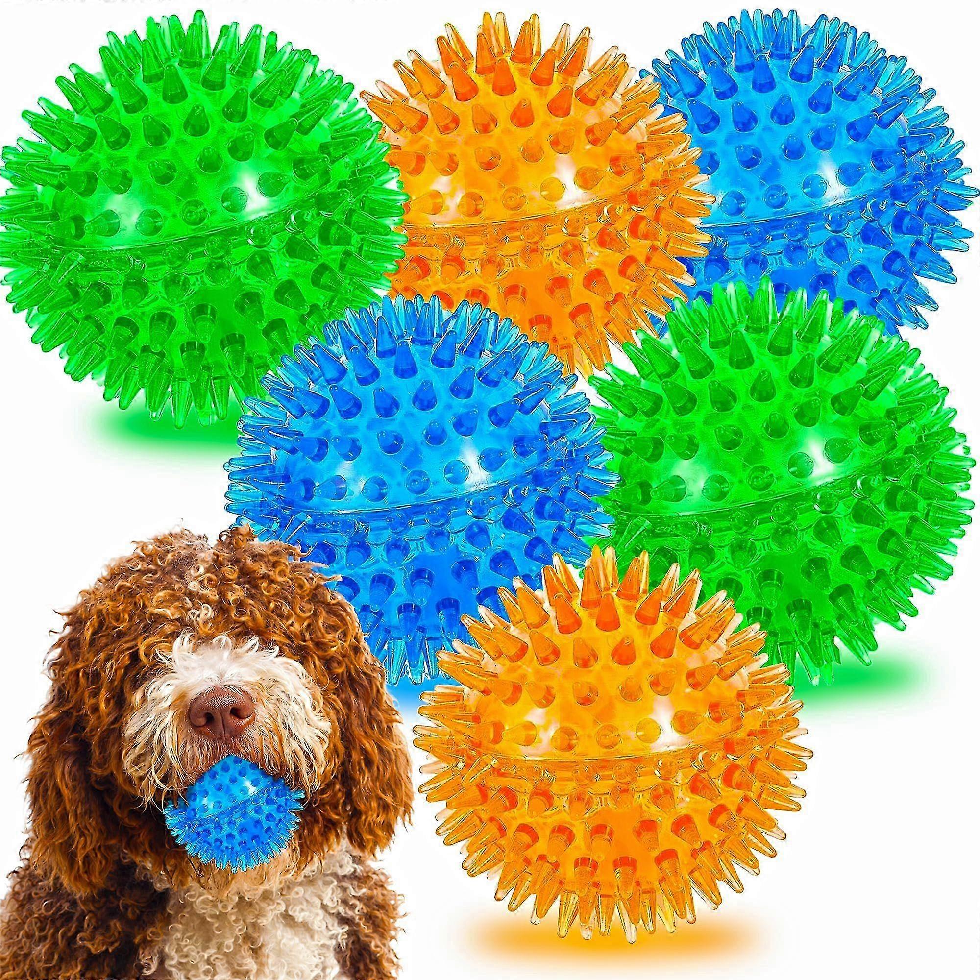 6 Pack Squeaker Dog Balls with High Bounce Rubber Spikes, Ideal for Teething Puppies, Small and Medium Aggressive Chewers Edition 1110