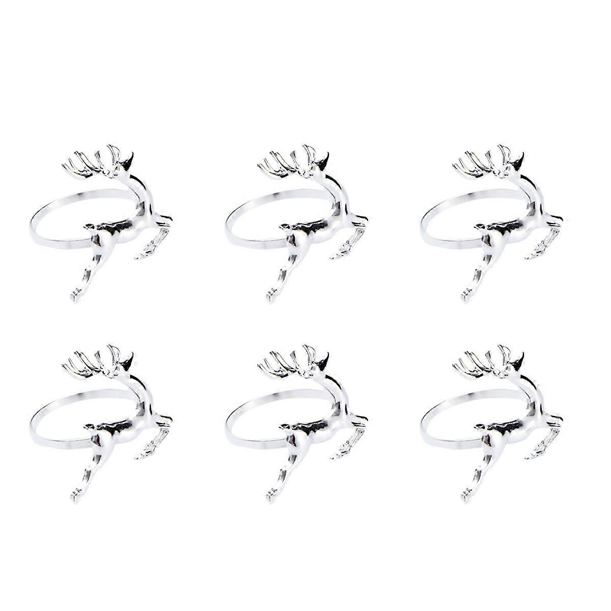 6 PCS Elk Deer Napkin Rings Table Decorative Ornament for Christmas Wedding Parties Everyday Use (Silver)