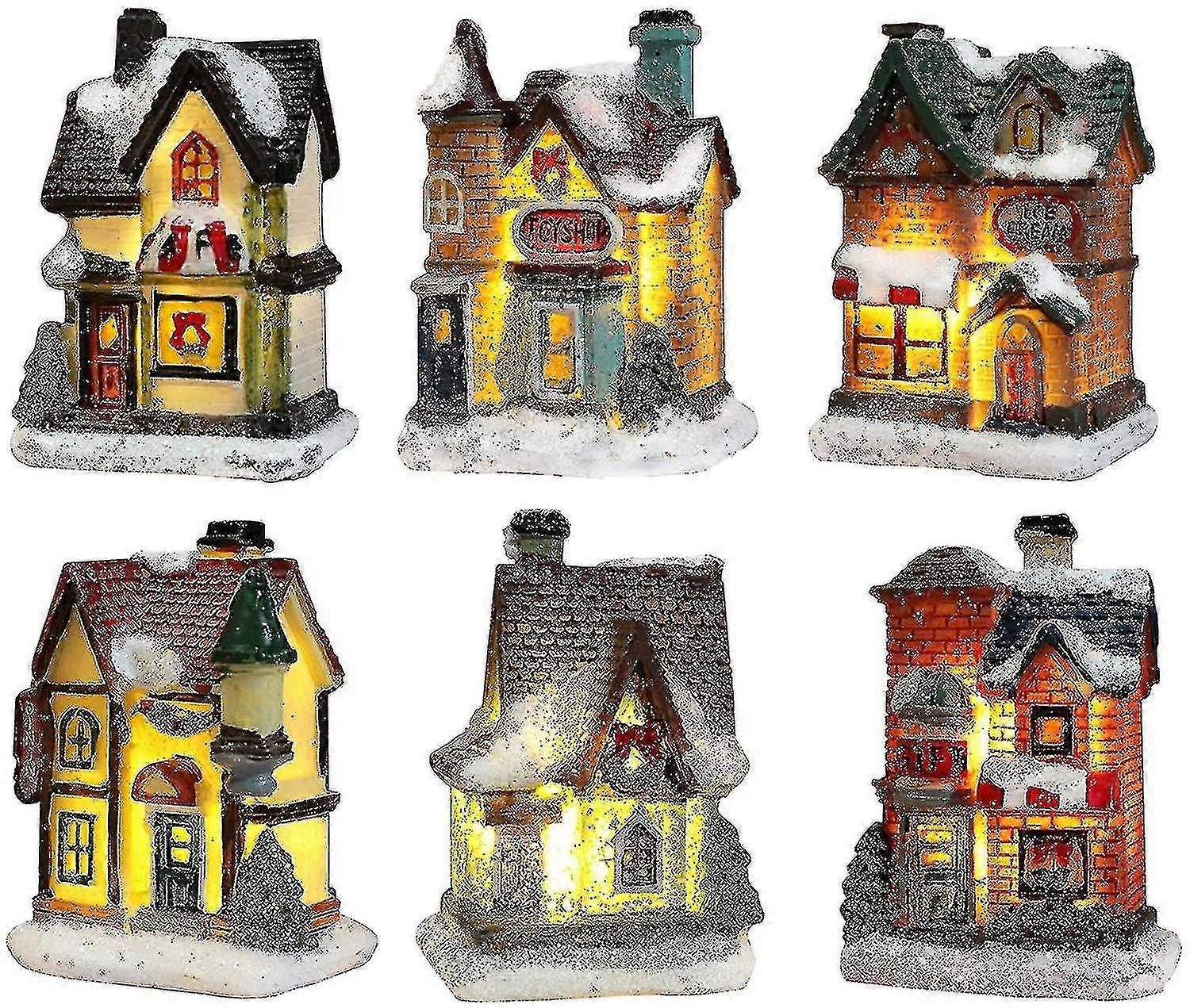 6 Pcs Christmas Village Houses With Lighting,xmas Decor,5.5*4.5*8 Cm