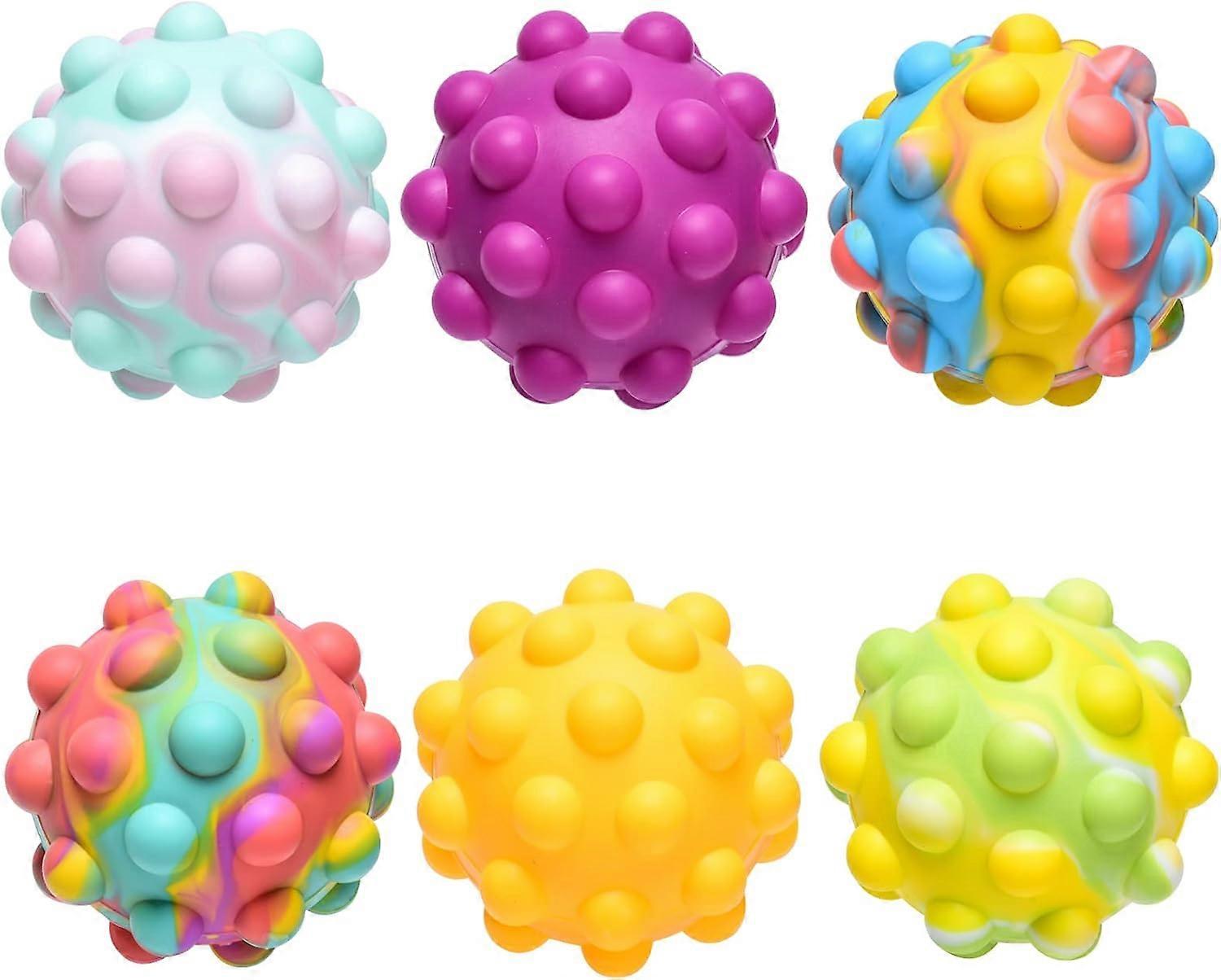 6 PCS Pop Ball Bubble Sensory Fidget Toys Pack, 3D Pop Fidget Stress Ball Toy Silicone Bouncing Ball Stress Relief Hand Toys, Pop Party Favor for Adul