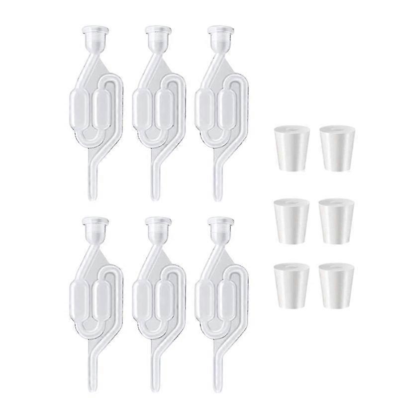 6 S-Shape Exhaust Seal Valve with Rubber Stopper Twin Airlock for Wine Making, Beer Brewing Glass C