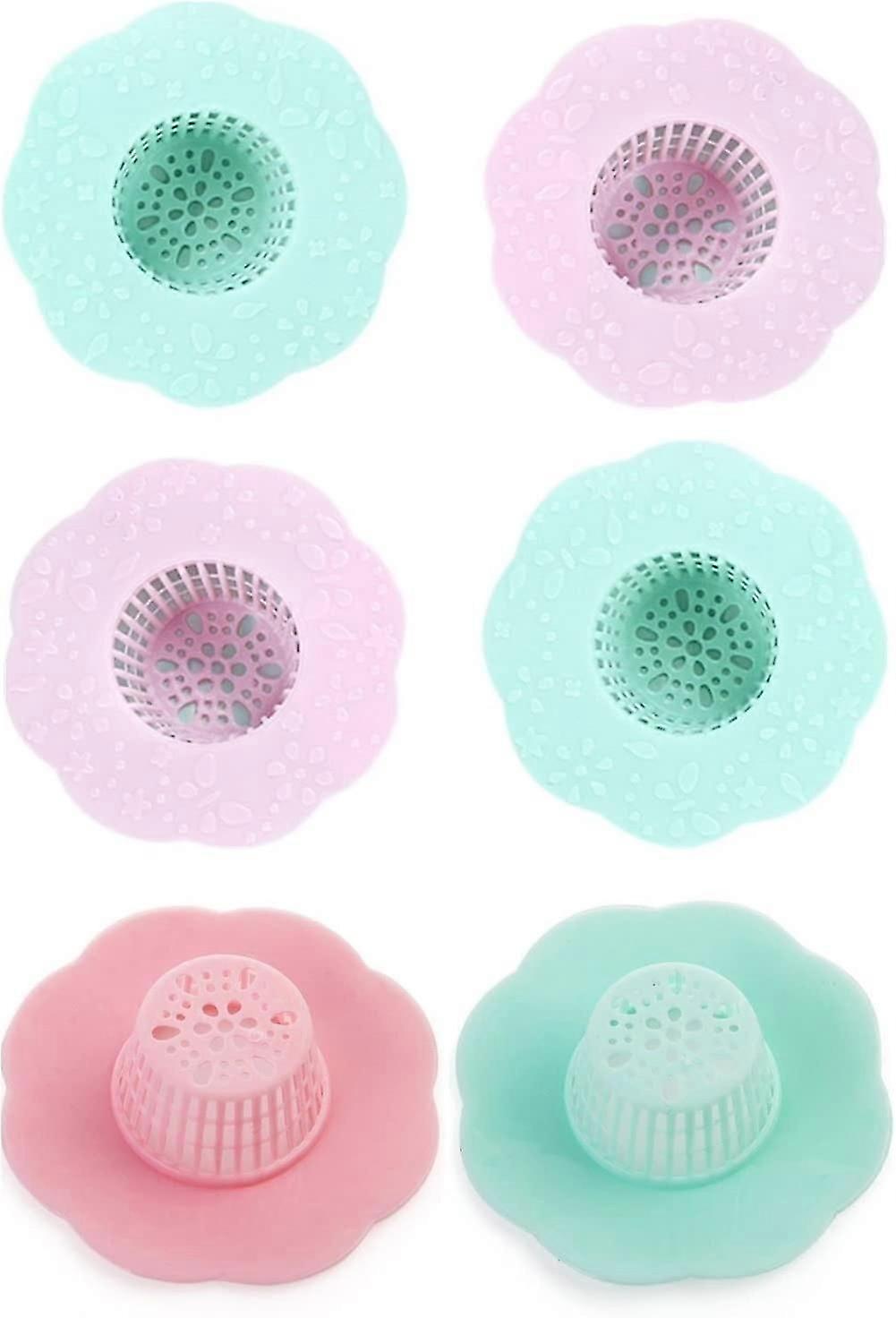Washbasin Drain Protector Silicone Flower Shape Drain Hair Catcher Strainer Snare Reusable Plastic Sewer Anti-Clogging Sink Filter,Pack of 6
