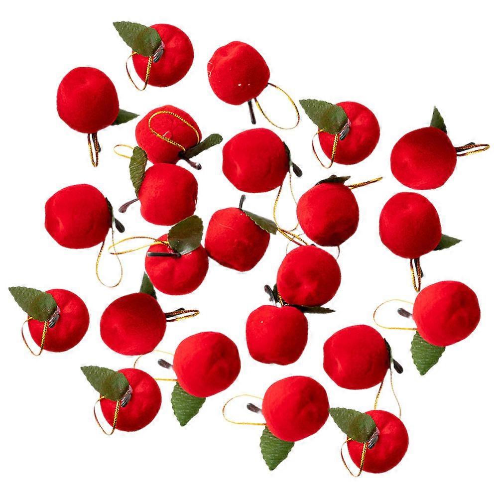 60pcs Christmas Decorative Apple Pendants Flocked Red Ornaments for Tree Hanging Holiday Party Festive Decorations