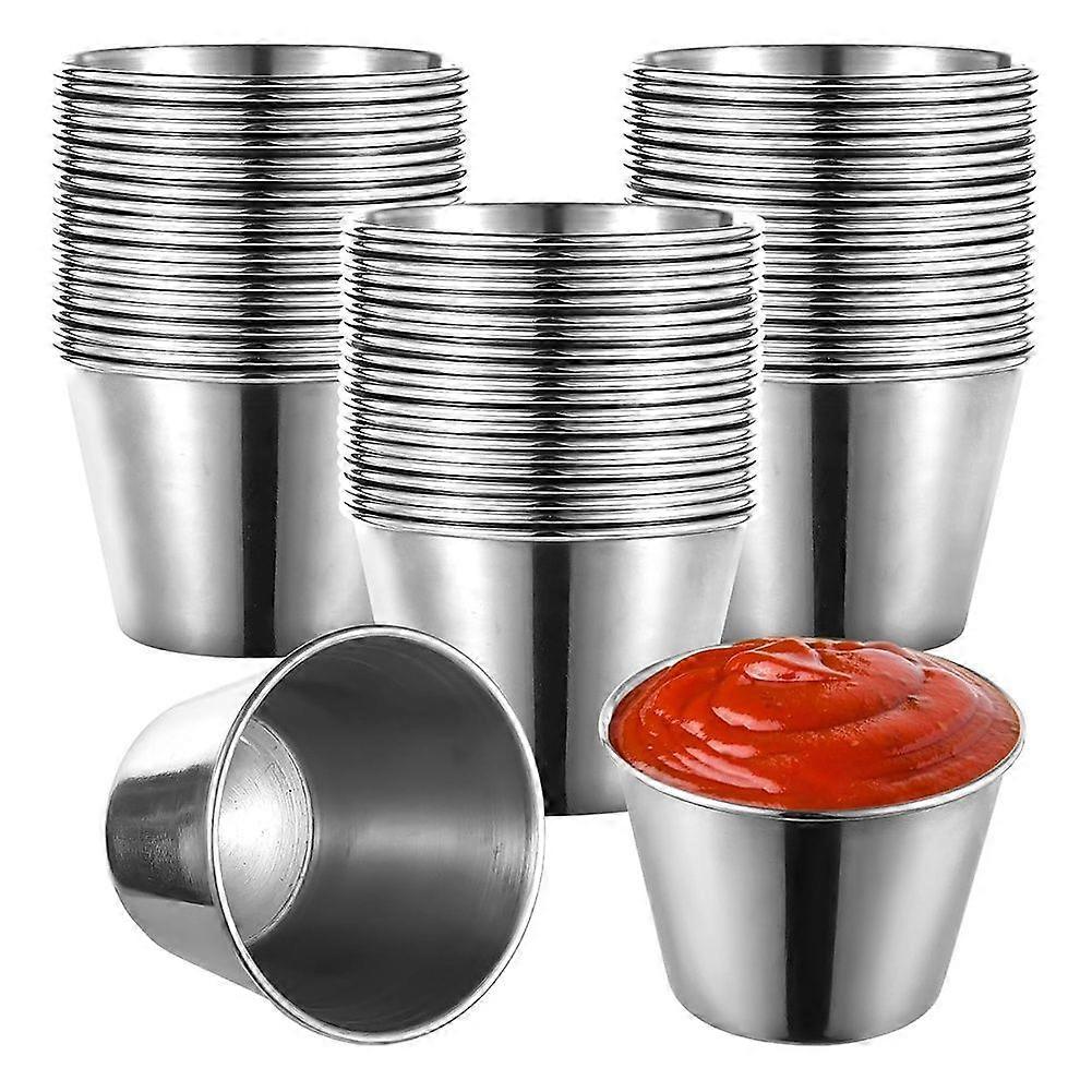 60 Pcs Stainless Steel Sauce Cups, 2.2oz Stainless Steel Dipping Sauce Cups,Reusable Round Dipping