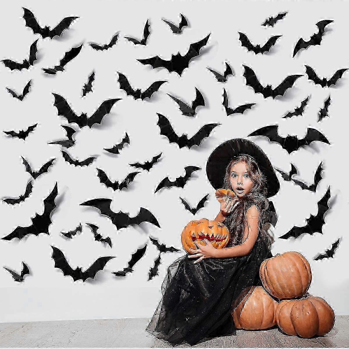 60Pcs Halloween Party Supplies Pvc 3D Decoration Realistic Horror Bat Wall Decal Wall Stickers