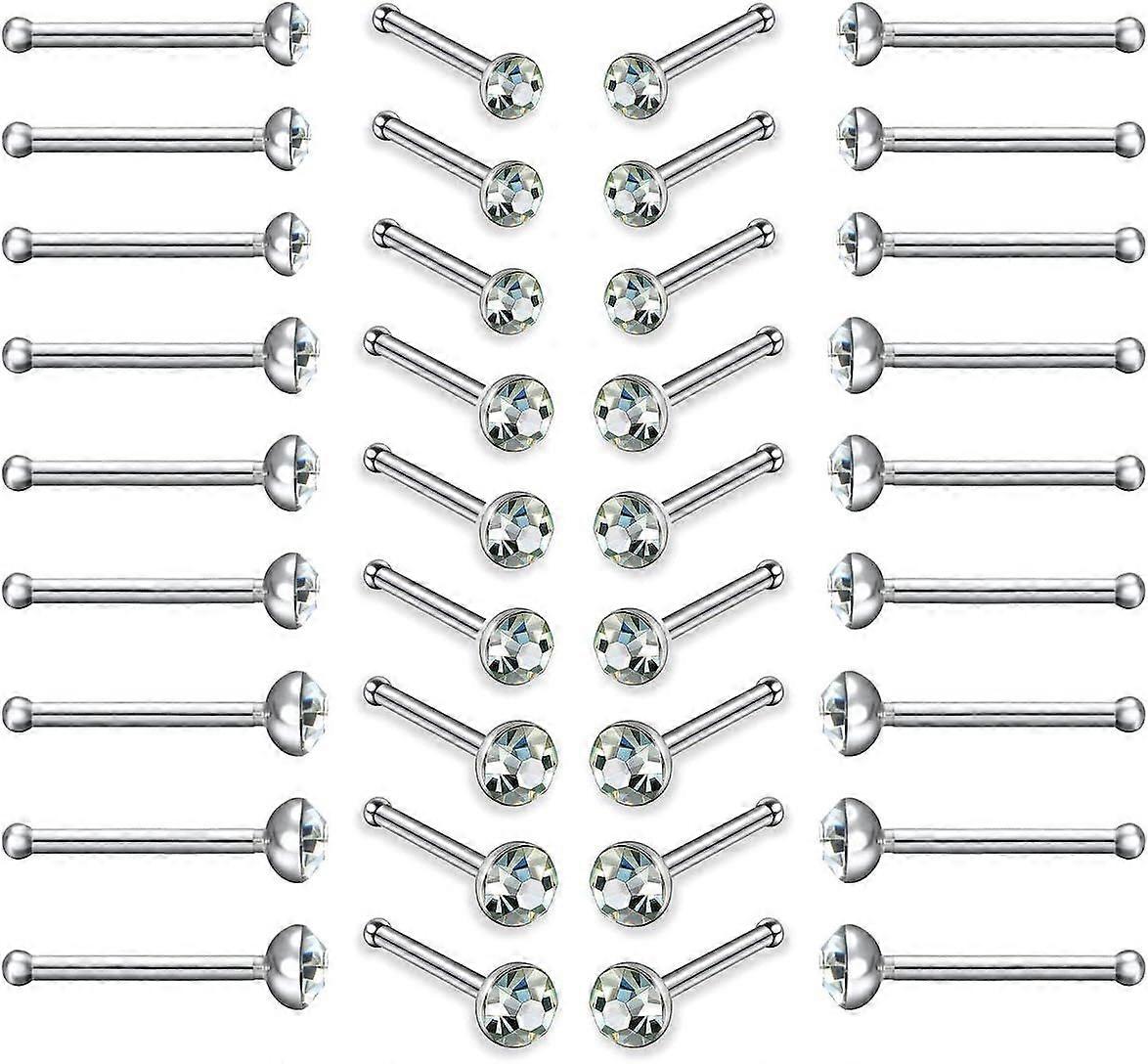 HYPOALLERGENIC & SPARKLING Nose Studs Bone: Crafted from Good Quality Stainless Steel & Sparkling Crystals, Hypoallergenic, LeadFree & NickelFree, and Safe for Your Sensitive Skin ELEGANT COLOR: Steel Color (Pin) & Clear White (Crystal), the Elegant Color of Your Fashion Jewelry Nose Studs Bone; Giving You Fantastic Feeling Every day. COMFORT FIT: 22 Gauge (Thickness): 0.6mm; Diameter of Crystal: 1.5mm, 1.8mm, 2.0mm; Total Length: 9mm. Straight Nose Studs, Easier to Put In; High Polished Smooth Surface, do no scratches to your nose, Comfortable to Wear. IDEAL GIFT CHOICE: Shinning & Eyecatching. Perfect nose studs bone accessories for you, fully showing your special taste and personality. And the ideal gift choice for Christmas Day, Anniversary Day, Valentine's Day and Birthday to you loved one. SPECIAL VALUE PACK: Comes with 60pcs Nose Studs Bone (20pcs 1.5mm Crystal Nose Studs Bone + 20pcs 1.8mm Crystal Nose Studs Bone + 20pcs 2.0mm Crystal Nose Studs Bone) + 1pc Alcohol Pad with box packing.