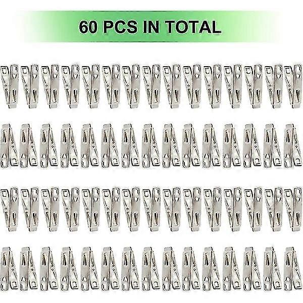 60 Pcs Stainless Steel Metal Clothes Pegs Clothes Pegs Clips with Storage Box for Clothes Sock Food Seal Photos