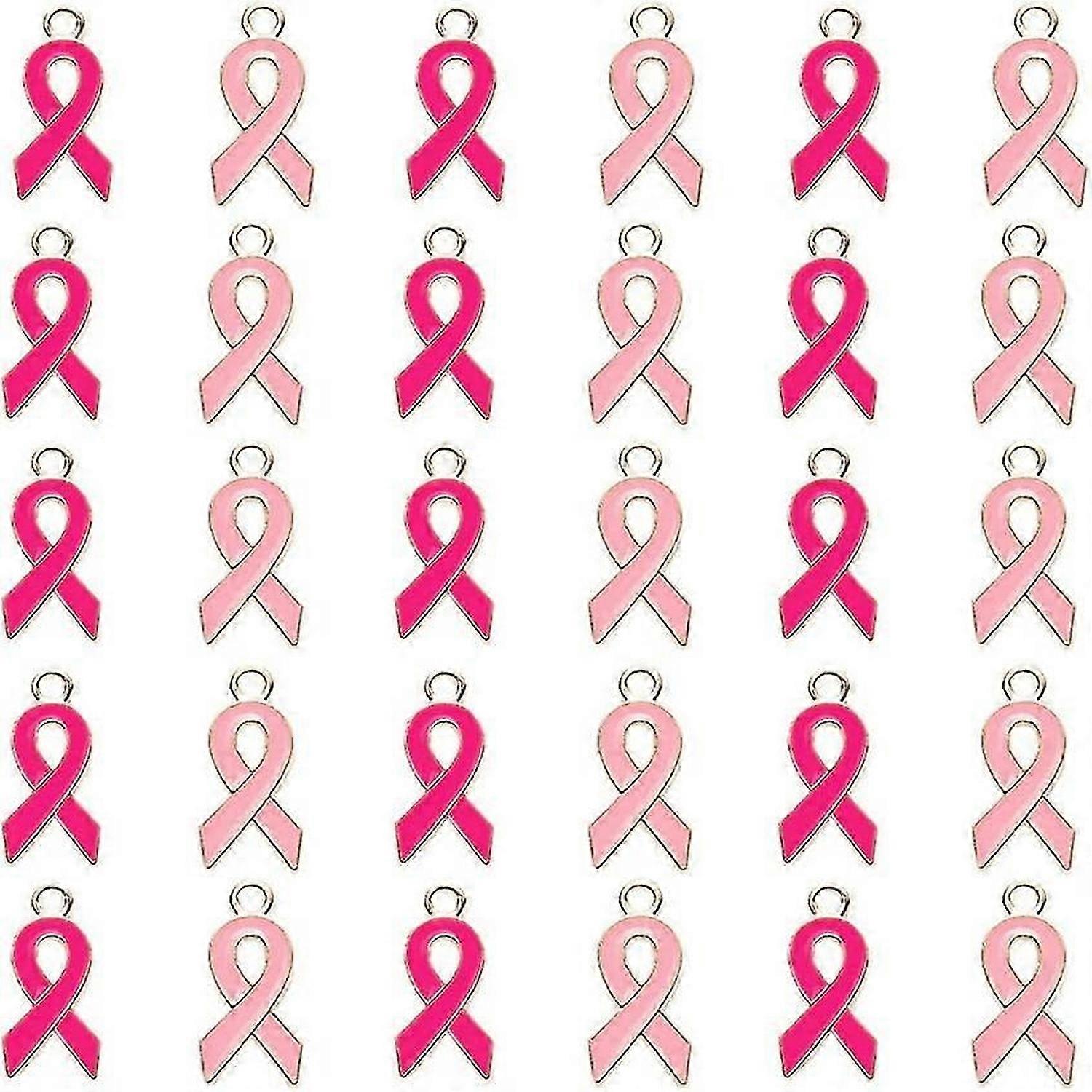60 Pcs Charms Pink Ribbon Pendants Enamel Dangle Beadspink