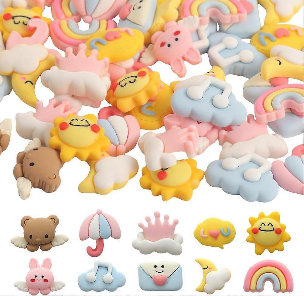 60Pcs Flatback Cabochons Cute Resin Cabochons Flatback Resin Cartoon Charms Rainbow Sun Cabochons Flatback Bunny Resin Charms for Embellishments Scrap