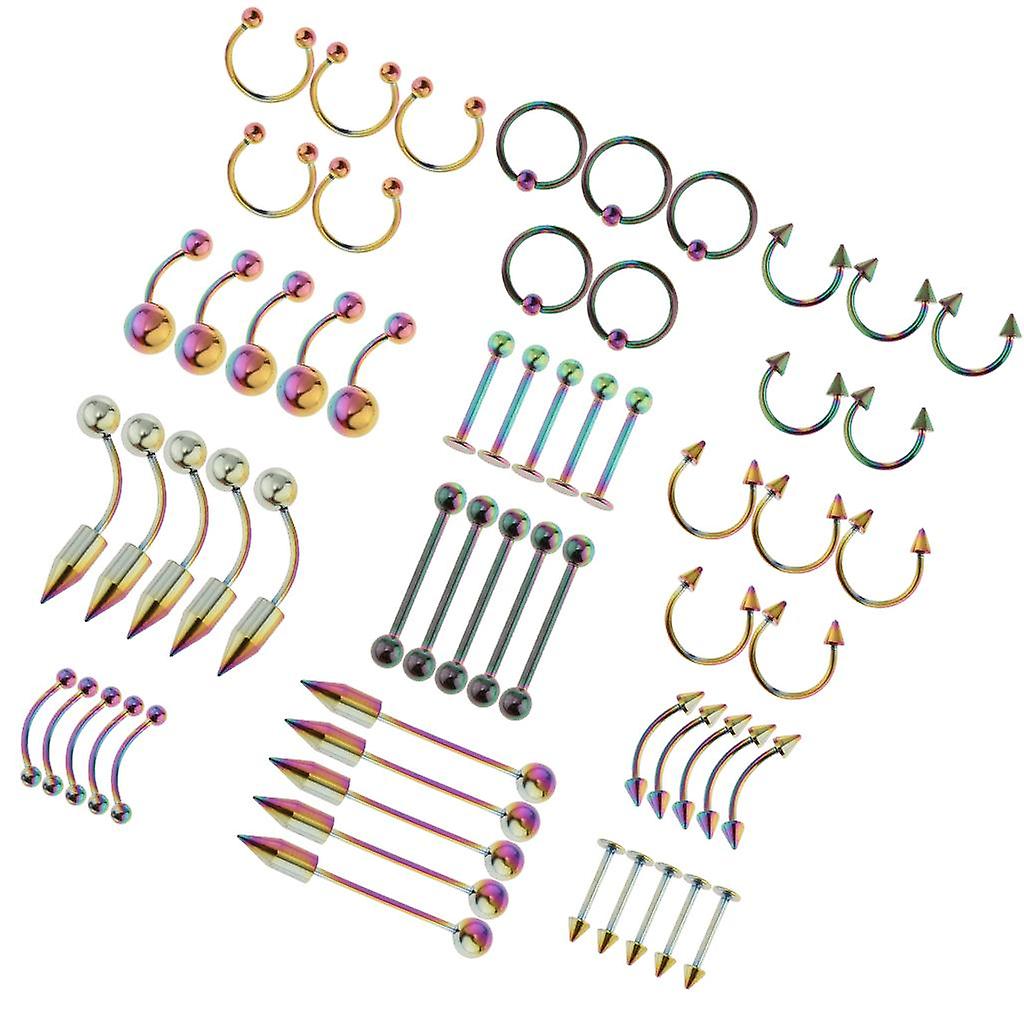 60 Piece Wholesale Tongue Eyebrow Lip Belly Navel Ring Piercing Kit Colorful