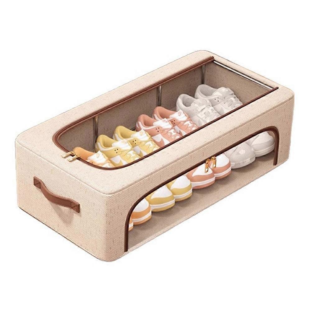 60 x 30 x 21cm Under Bed Shoe Storage Box with Dual Windows Cotton Linen Folding Clothes Organizer