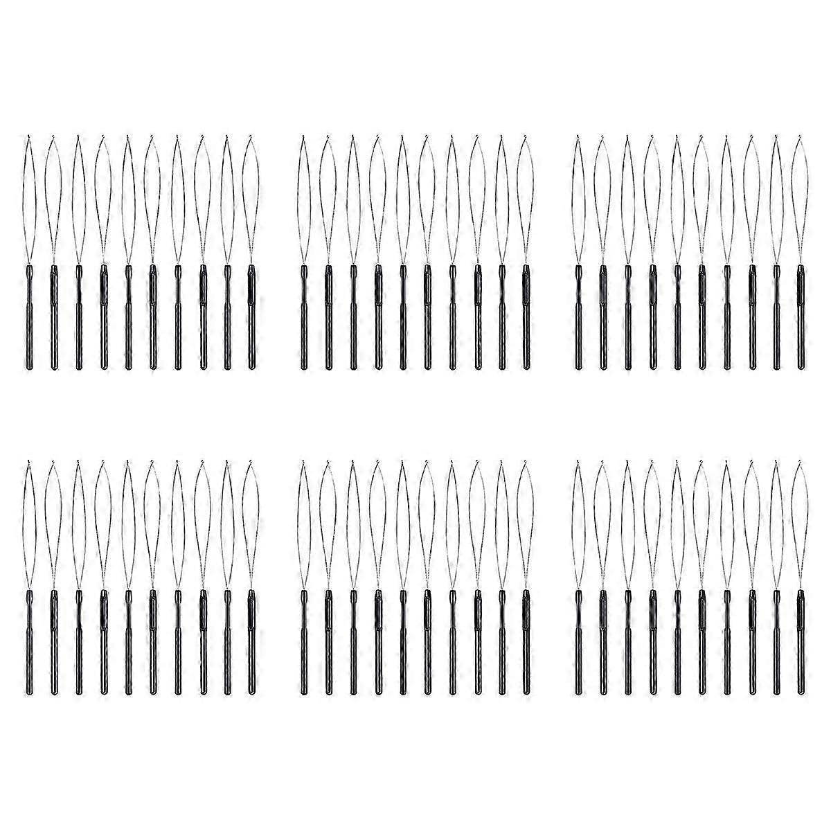 60Pcs Hair Extension Loop Threader Hook Tool and Bead Tool Black Loop Threader for Hair Extension or