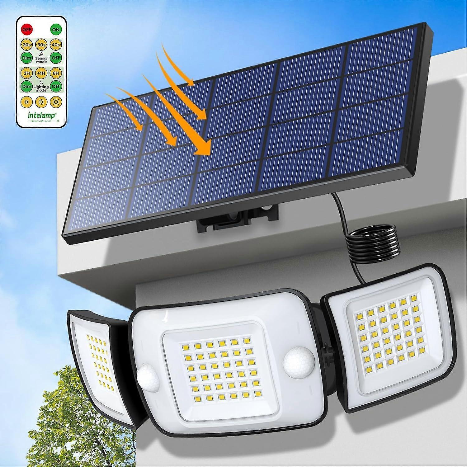 6000 mAh 1200 LM Waterproof Solar Lighting with Independent Solar Panel 4 Modes 270° Wide Angle Solar Light Outdoor Solar Lights with Remote Control <p>High Precision Dual Sensors:&nbsp; solar lights are equipped with dual sensors, 180° wide angle motion detector (2 times wider than standard single sensor), which can cover blind spots of gates and fences and provide a wider lighting area</p> <p>4 operating modes: solar outdoor lamp 4 lighting modes: Mode 1 - High brightness when the sensor detects motion, low brightness when the sensor does not detect motion. Mode 2 - Brightness is on when the sensor detects motion and off when there is no motion. Mode 3 - Motion sensor disabled. Moderate brightness is constant and turns off at the end of the timer. Mode 4 - Motion sensor disabled. The medium brightness is constant, and the light dims after the timer ends</p> <p>CUSTOMIZED REMOTE CONTROL WITH 3 SMART SETTINGS: Avoid unnecessary triggering: Unlike standard motion delay setting (30s fixed),&nbsp; outdoor solar light chooses between 20s/30s/40s to adjust the lighting duration according to your needs (suitable for busy roads or quiet areas). Optimized energy saving: shorter trigger time = battery saving for longer life</p> <p>High efficiency solar panels and high capacity batteries:&nbsp; solar security lights use high-power solar panels of 184cm2 charge more. This allows the high-capacity battery to quickly hold 3 times more charge than other major manufacturers. From a full charge in daylight, the Solar Security Lights can last up to 3 nights in detection mode at real brightness</p> <p>High Quality Materials, Longer Lifespan Our solar lights are made of durable ABS material, which can withstand extreme weather conditions. IP65 waterproof rating ensures that the safety light will not fail in rain, snow or sleet. So it can provide you with lighting even on stormy nights</p>