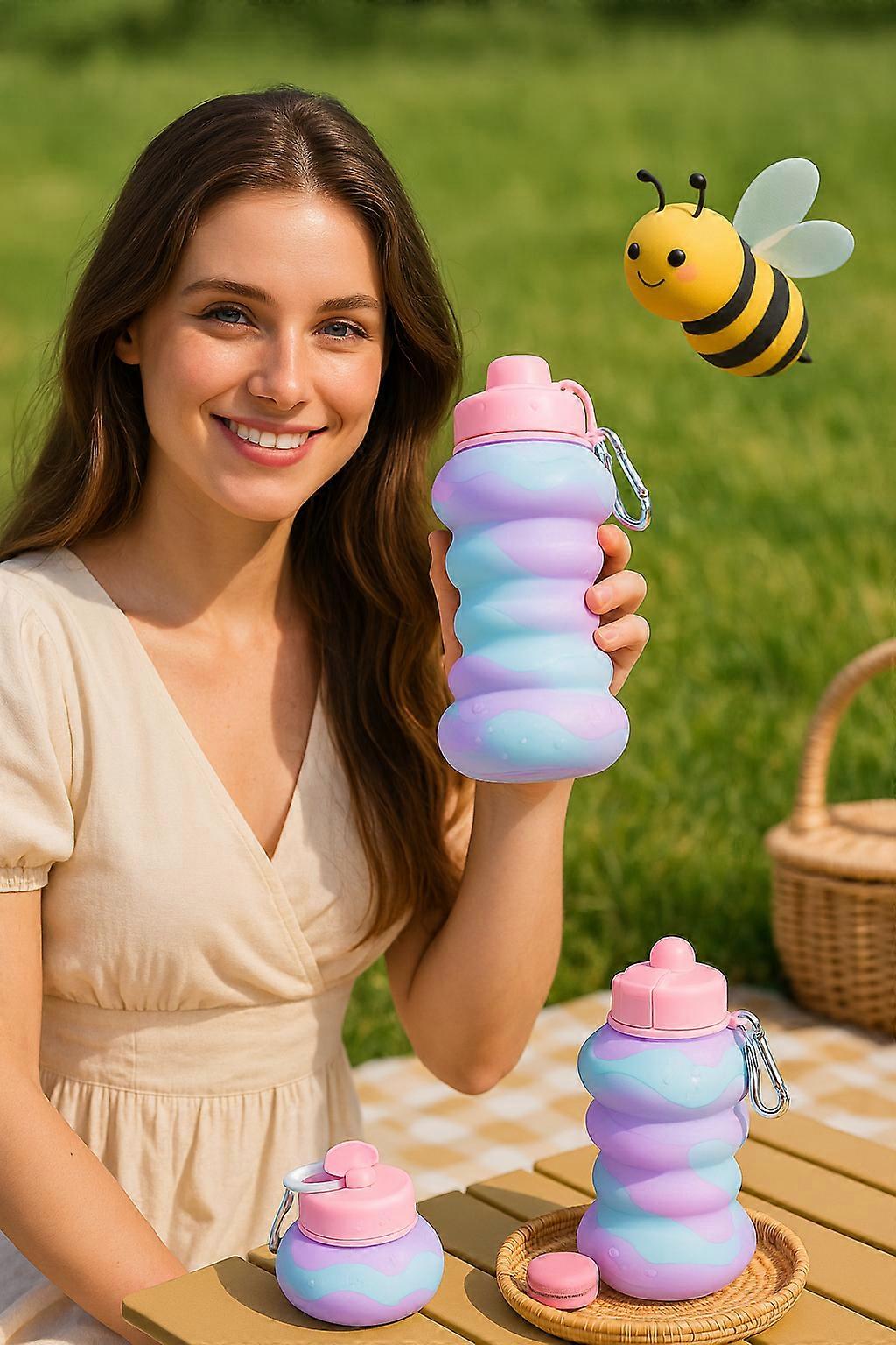 600ML Donut Folding Water Bottle Gradient Silicone Flask with Clip Cute Leakproof BPA-Free Travel Hydration Bottle