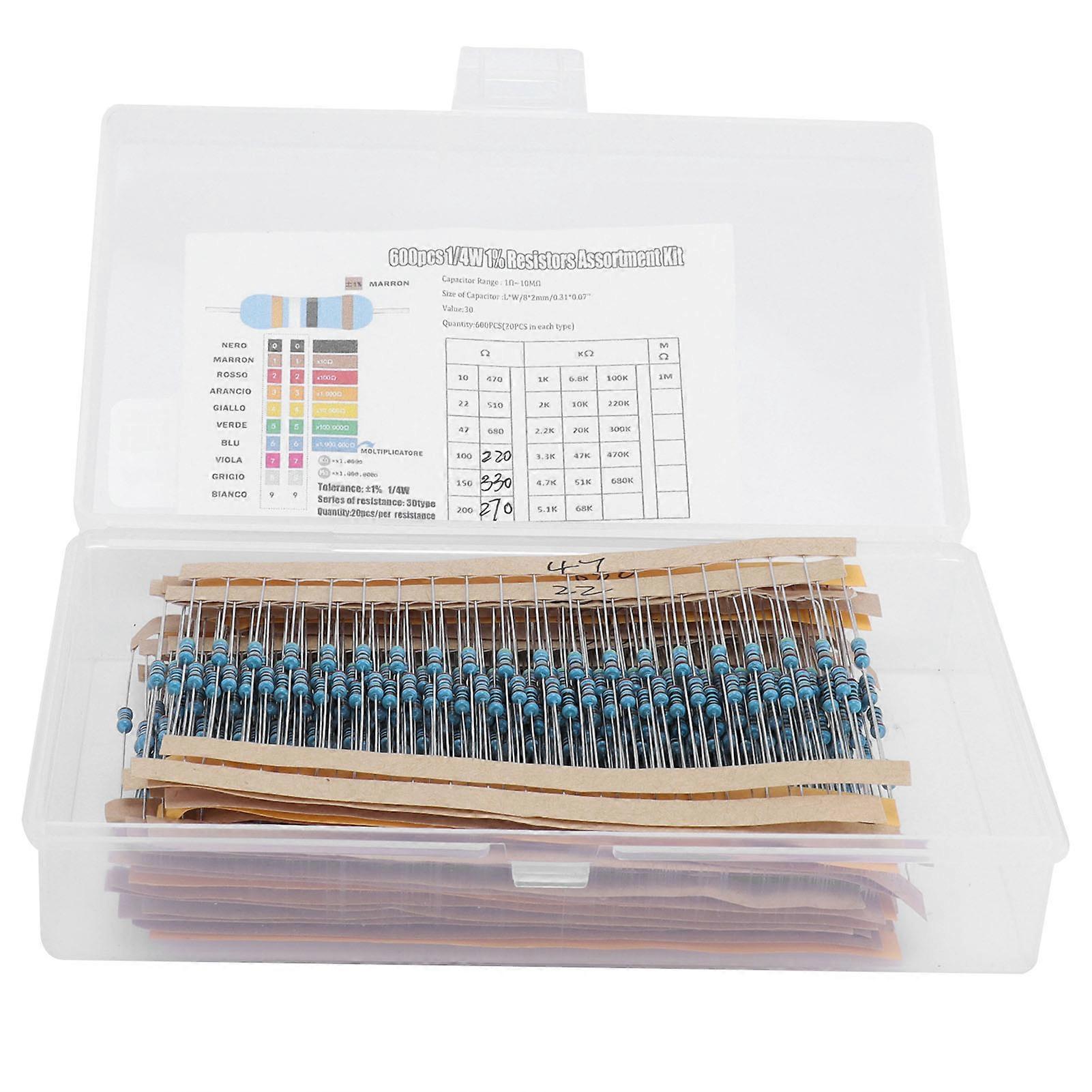 600Pcs Resistor Assortment Kit 30 Values 1% Metal Film Resistance Components 1/4W 101M