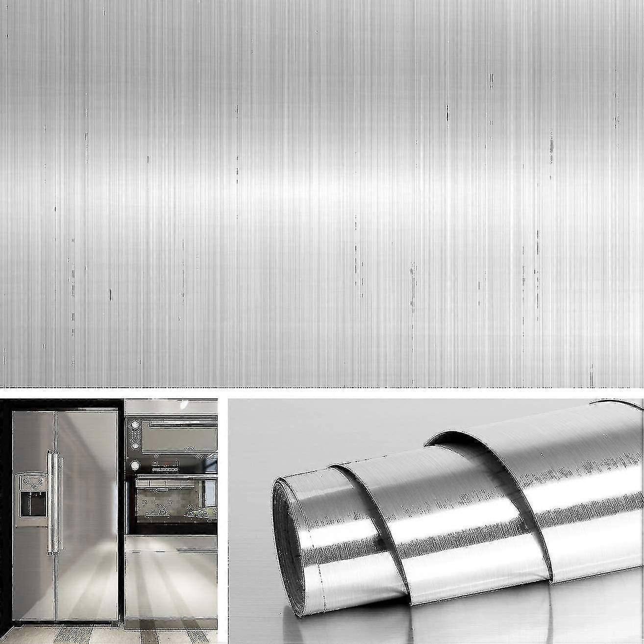 60cm*3m/40cm*2m Brushed Nickel Effect Stainless Steel Self Adhesive Kitchen Backsplash Vinyl Waterproof Oil Resistant Washable For Dishwasher Fridge