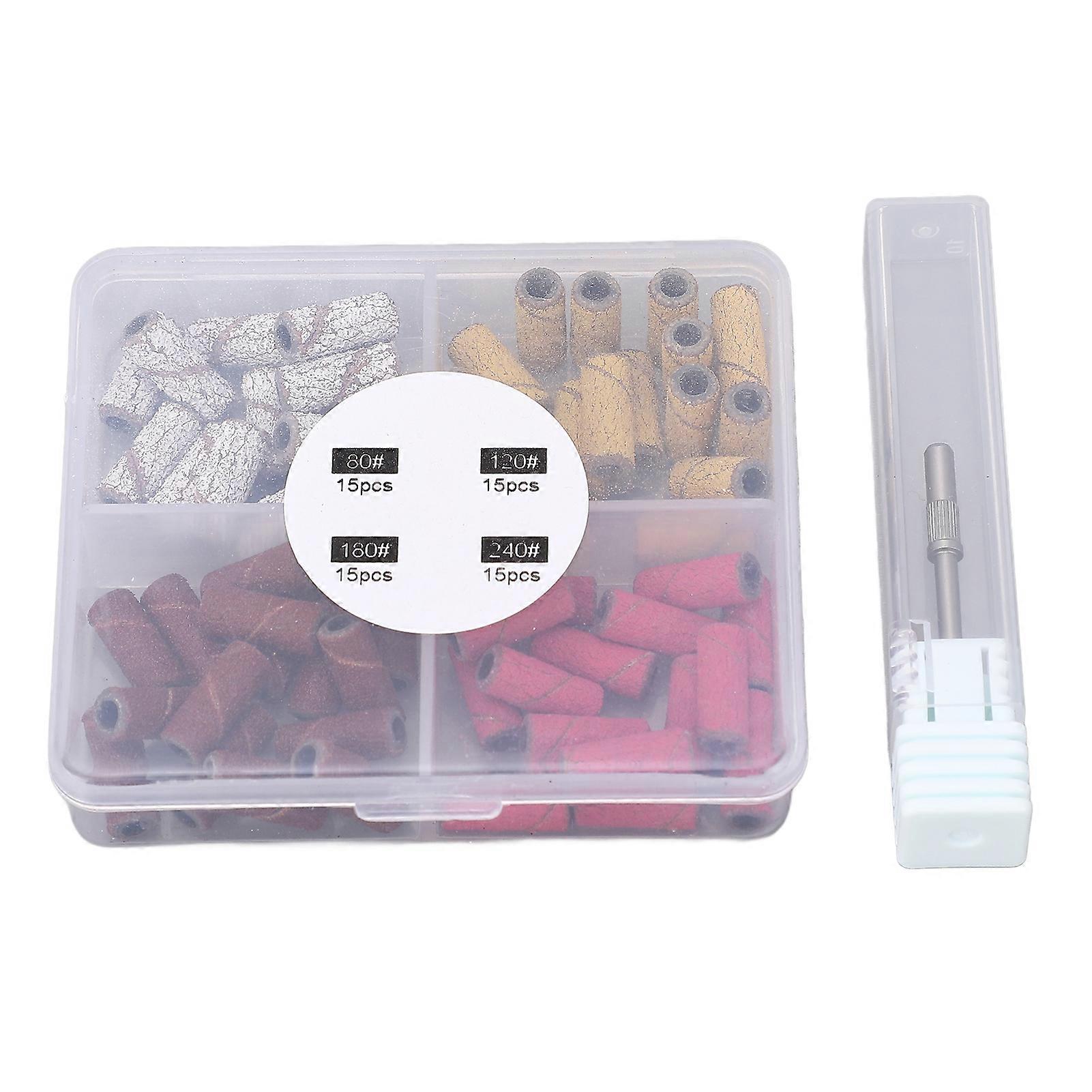 60pcs Nail Art Sanding Caps Dead Skin Removal Manicure Grinding Bands with Nail Drill Mandrel