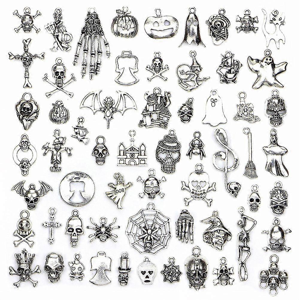 60pcs Halloween Alloy Pendant DIY Silver Trinkets Creative Charming Pendant for Woman Mixed Loading