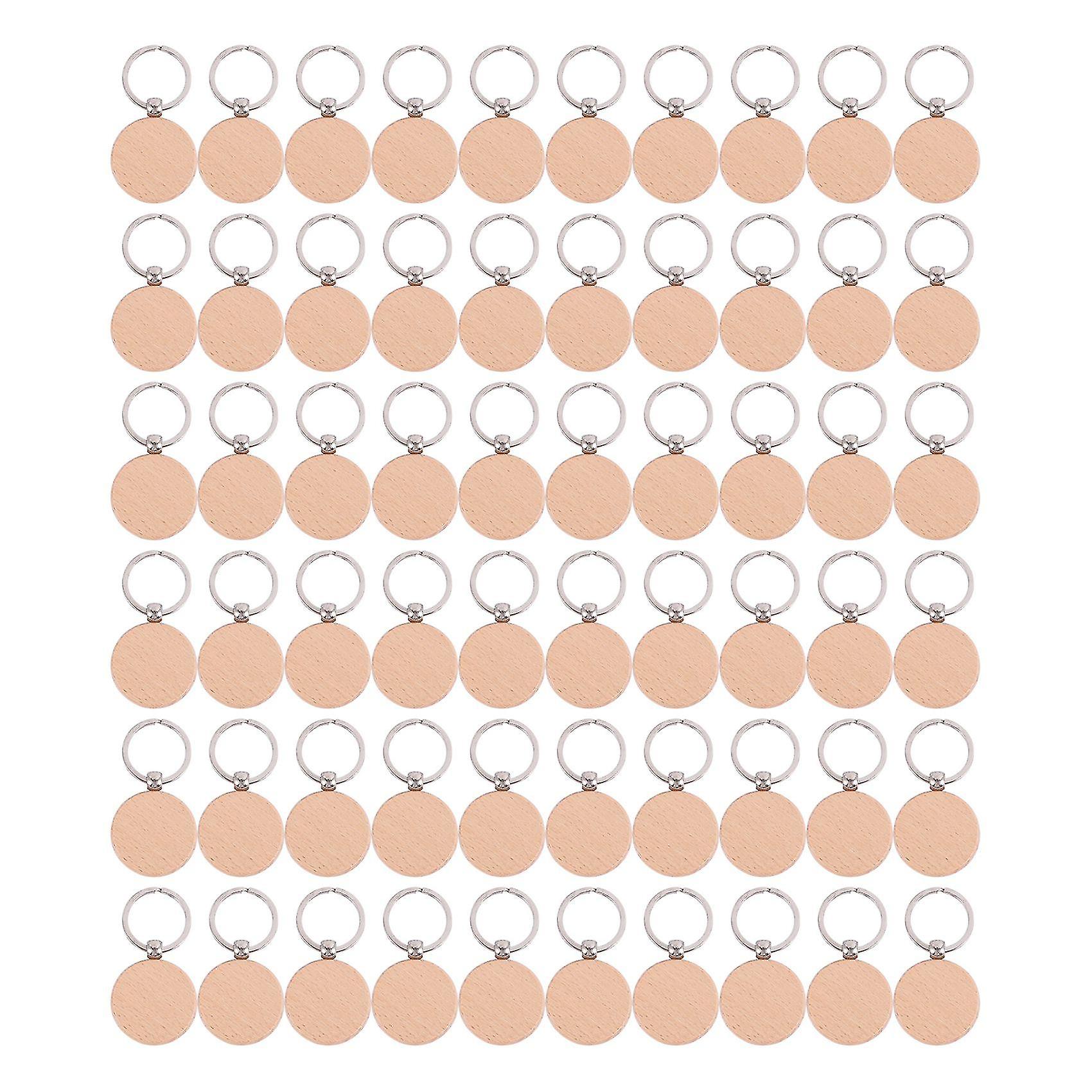 60pcs Blank Round Wooden Key Chain Diy Wood Keychains Key Tags Can Engrave Diy Gifts (haoyi