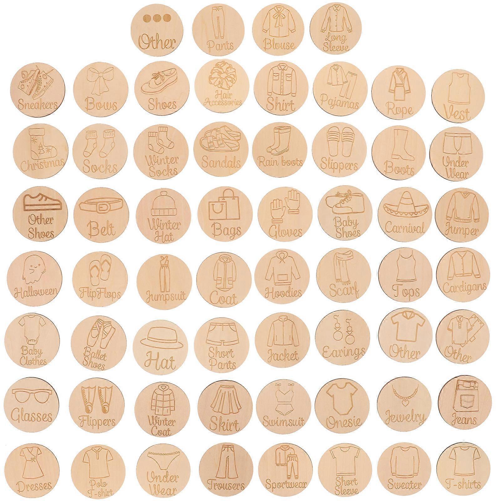 60Pcs Clothing Labels Wooden Classification Labels for Storage Organizer and Closet Organization