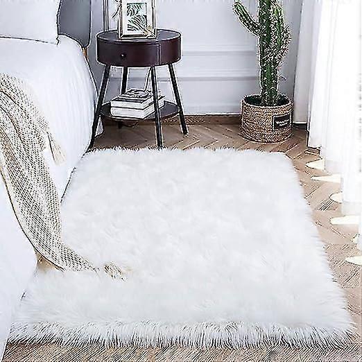 60x90cm Faux Wool Rug Fluffy Soft Long Hair Upholstery White