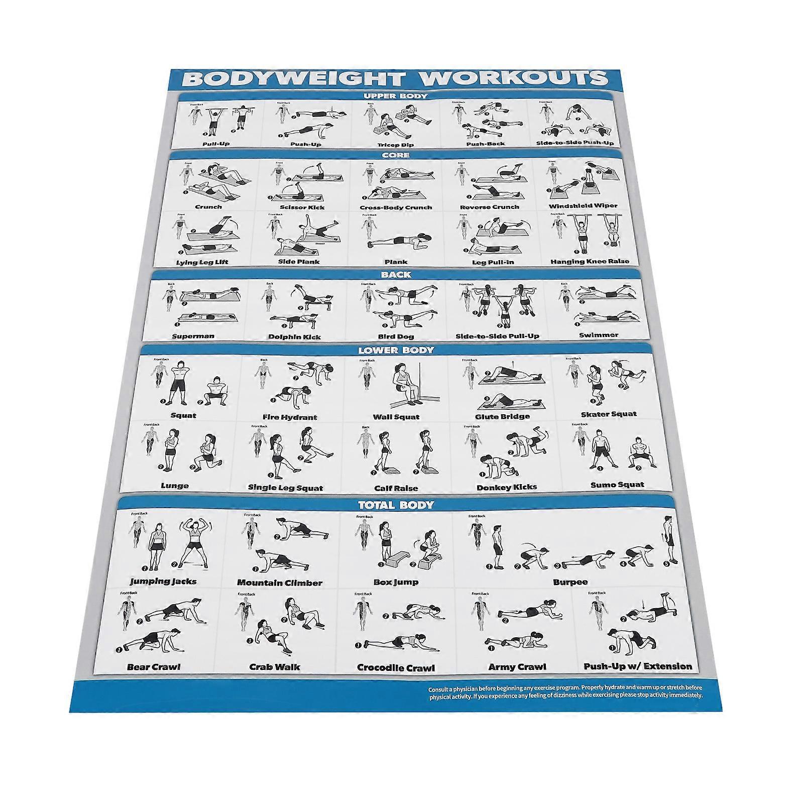 60x90cm Workout Charts Clear Rugged Easy Reading Bodyweight Exercises Poster for Home Gyms Studios Bedrooms