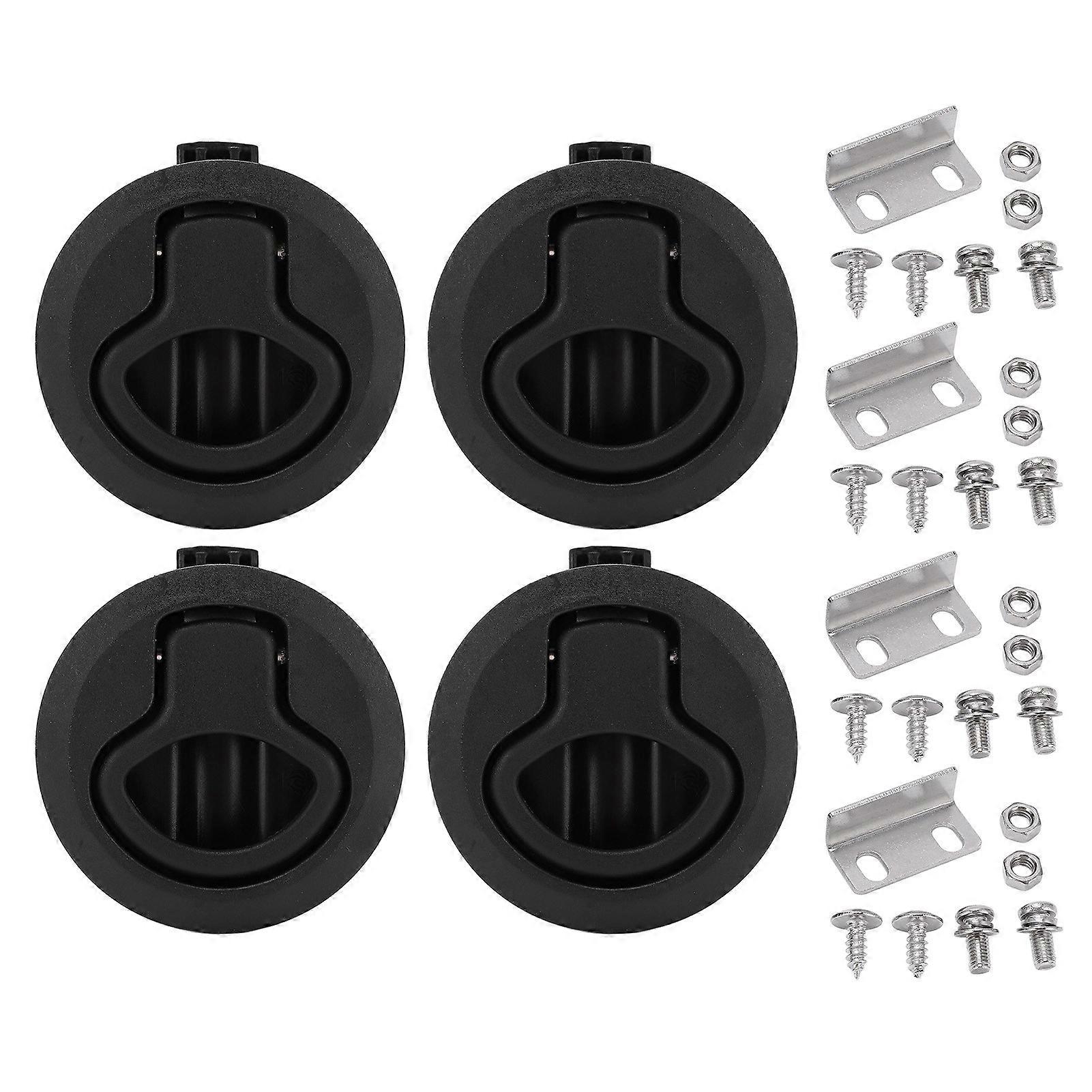 Features: 1.Wide Application: This latch is widely used by all the major boat and yacht manufacturers, bait well lids, hatches, center console doors, tackle units, and drawer units, electrical enclosures. 2.Long Durability: Round pull latch is made of black ABS plastic with steel screws and keeper for maximum durability, strong corrosion resistance. 3.Embedded Type: Flat appearance, recessed handles and hidden mounting hardware, give these covers a pleasing appearance. 4.Weatherproof: UV stabilized flush latch is designed to withstand harsh marine conditions. 5.Easy Installation: According to the original factory specifications, easy to install and use. Specification: Item Type: Flush Pull Slam Latch Material: ABS Color: Black Diameter: Approx. 61mm/ 2.4in Scope of Application: RV, trailer, ship Properties: No lock core PackageList: 4 x Flat Lock 8 x Nut 8 x Screw 8 x Bolt 4 x Bracket