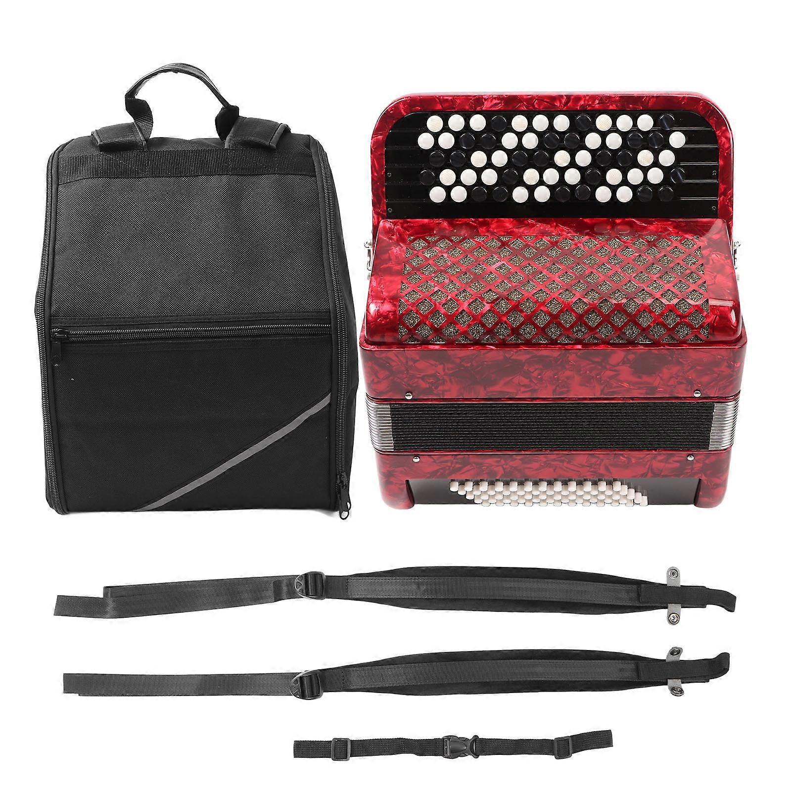 62 Keys Accordion 60 Bass Button Accordion Kids Educational Musical Instrument with Straps Red