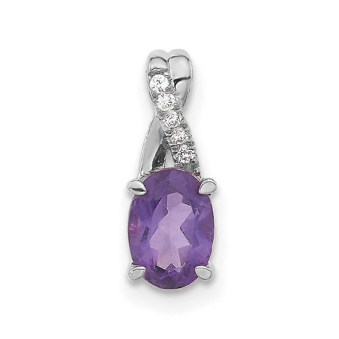 6.25mm 14k White Gold Oval Amethyst and Diamond Pendant Necklace-Pendant for Women