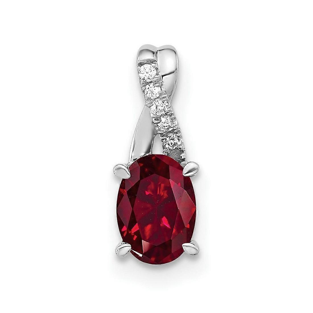 6.25mm 14k White Gold Oval Created Ruby and Diamond Pendant Necklace-Pendant for Women