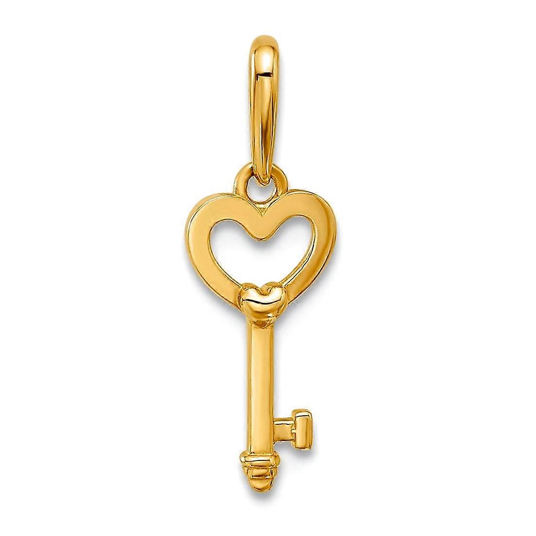 6.2mm 14k Solid Yellow Gold Polished Love Heart Key Pendant Necklace-Pendant for Women - .3 Grams