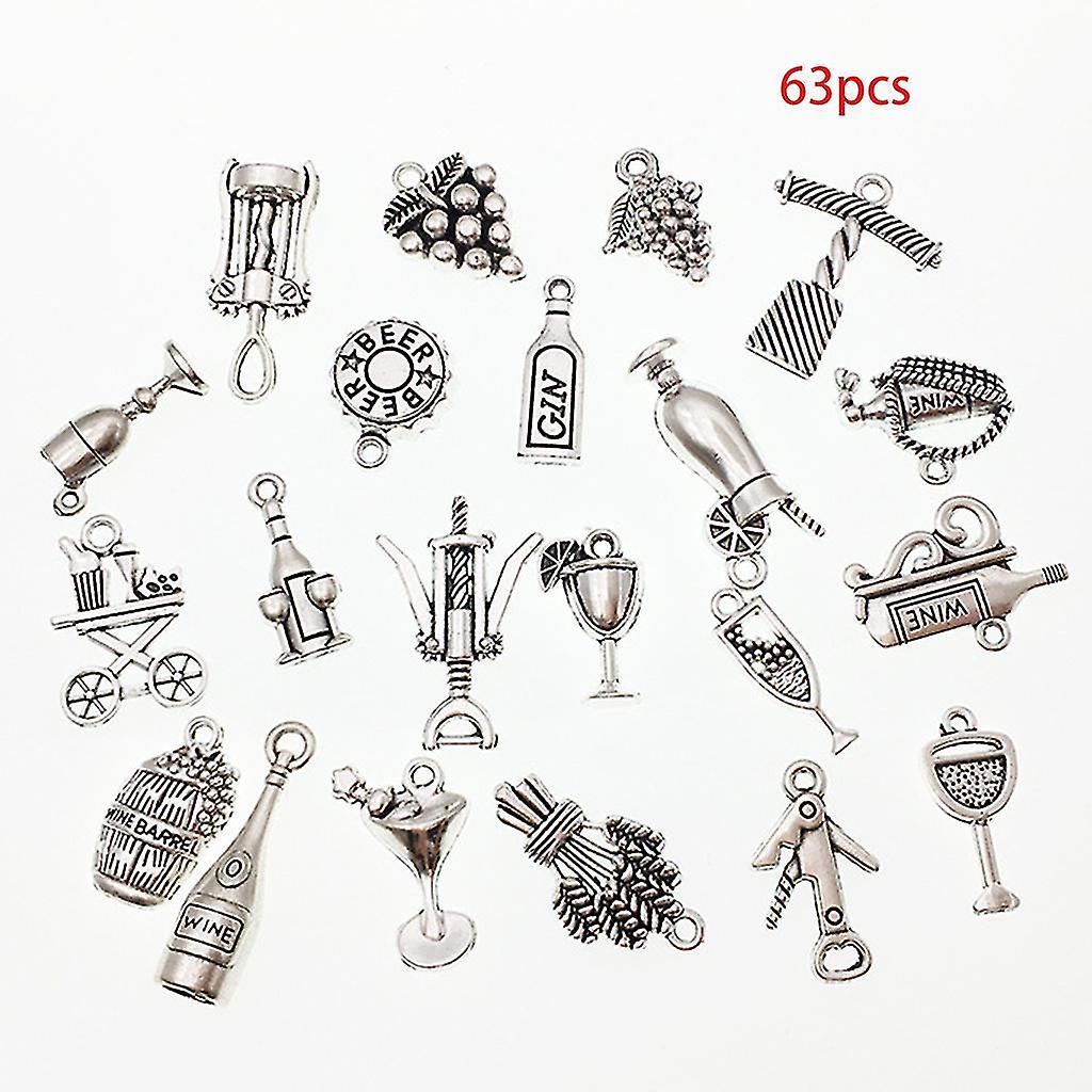 63pcs Mixed Antique Silver Wine Glass Grape Cocktail Bottle Opener Charms Pendants Diy Jewelry Makin