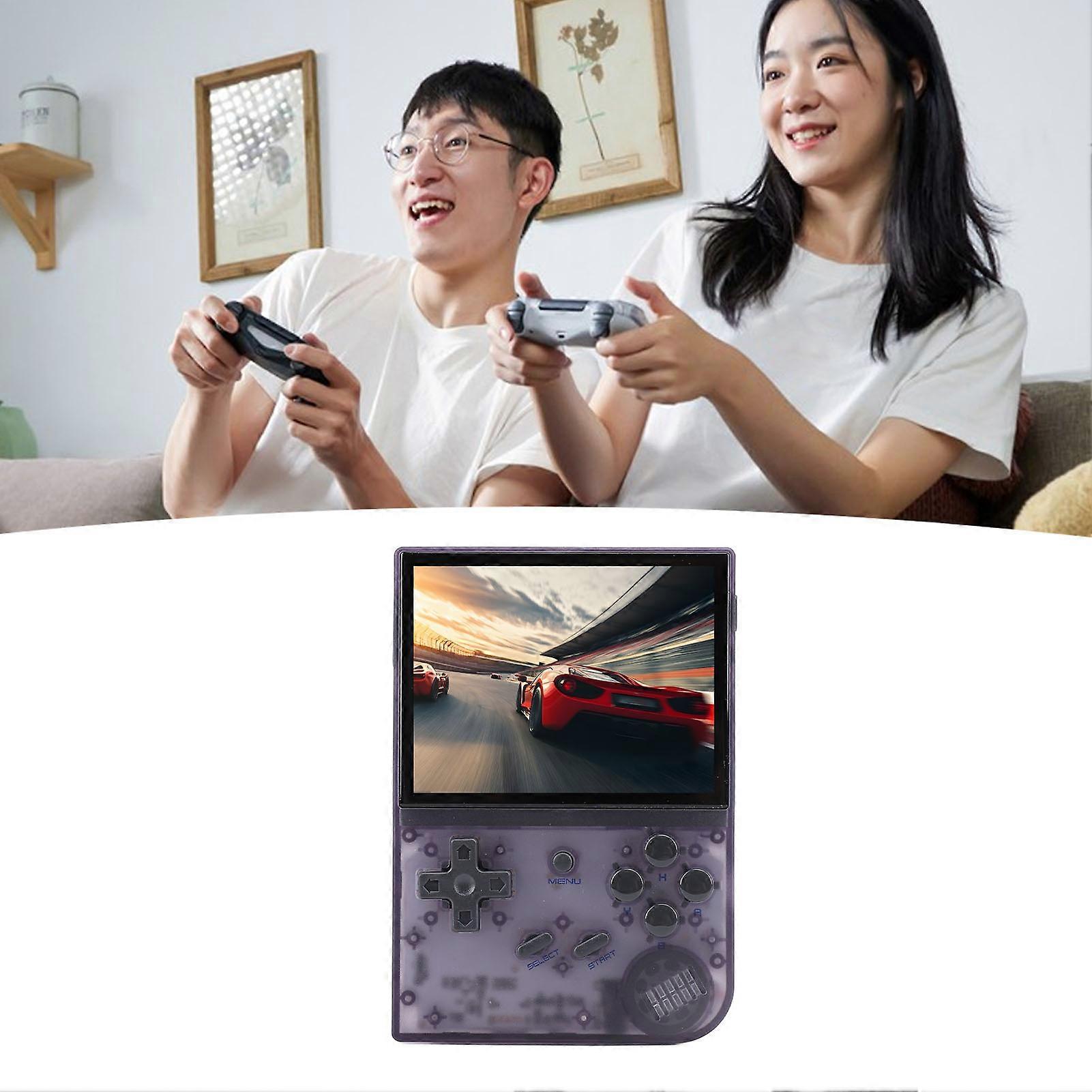 64GB Retro Handheld Game Console with 3.5 Inch IPS Screen 640x480 Support Gamepad High Definition Multimedia Interface TV Output Transparent Purple
