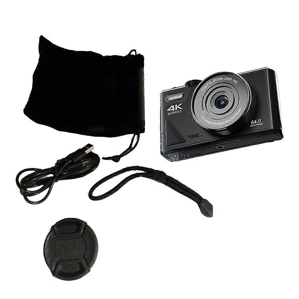 64MP Digital Camera for Photography 4K Video Vlog Camcorder 18X Digital Zoom Camera 180 Flip Screen Black