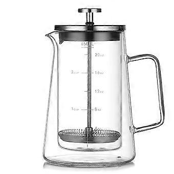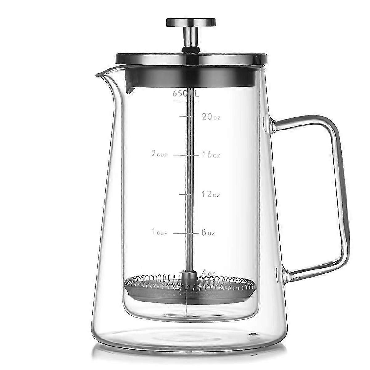 650ml French Press Coffee Maker - Double Wall Borosilicate Glass Tea Kettle, Home Coffee Pot with Filter jn