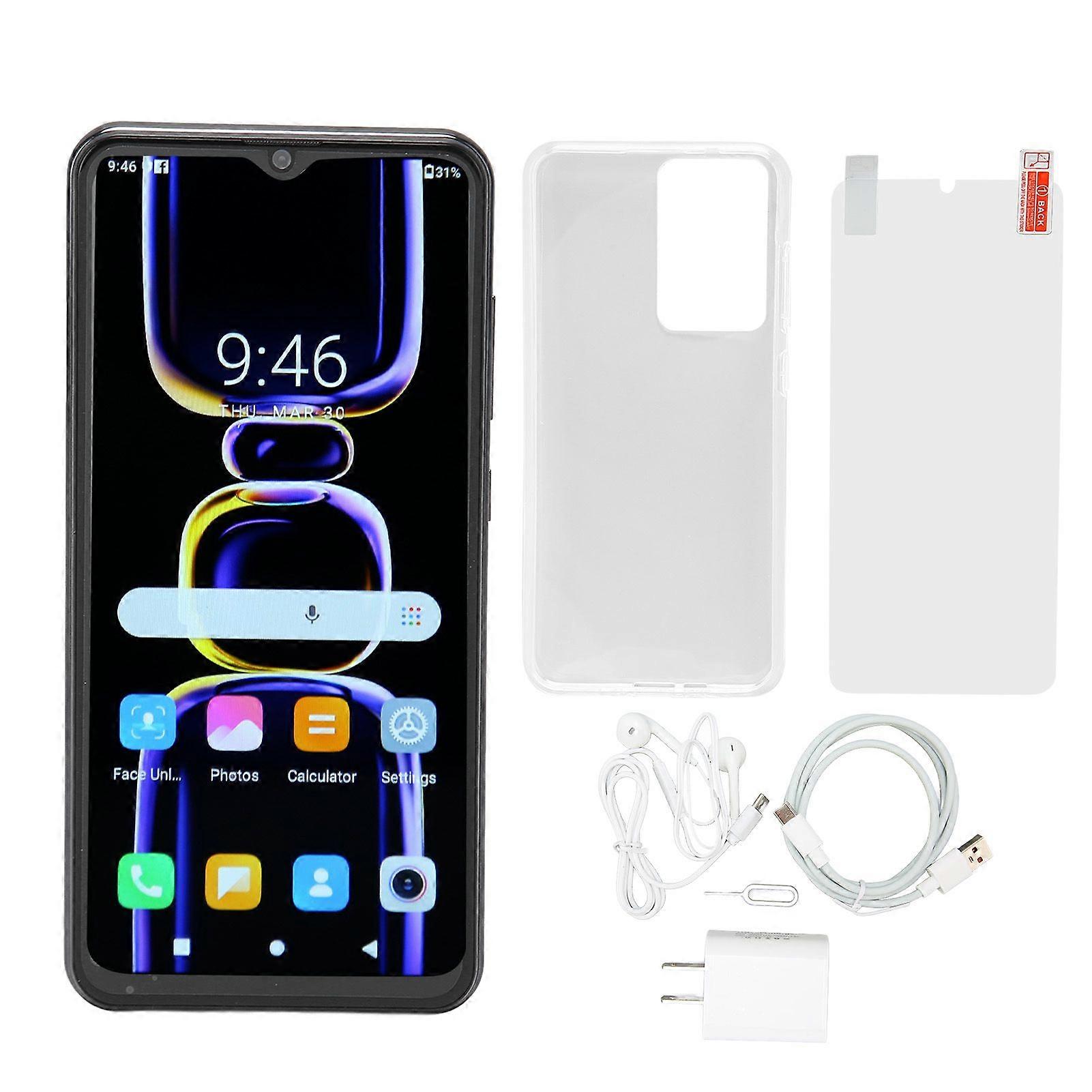 6.53in K60 Phone 6GB RAM 128GB ROM Face Identification FHD Octa Core Processor Smart Phone for Android12 100240V Black US Plug