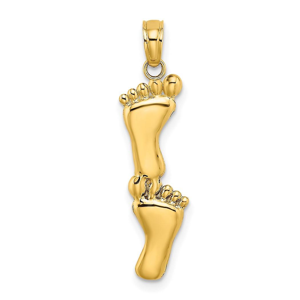 6.5mm 10k Solid Yellow Gold Polished Double Vertical Feet Charm Pendant Necklace for Women