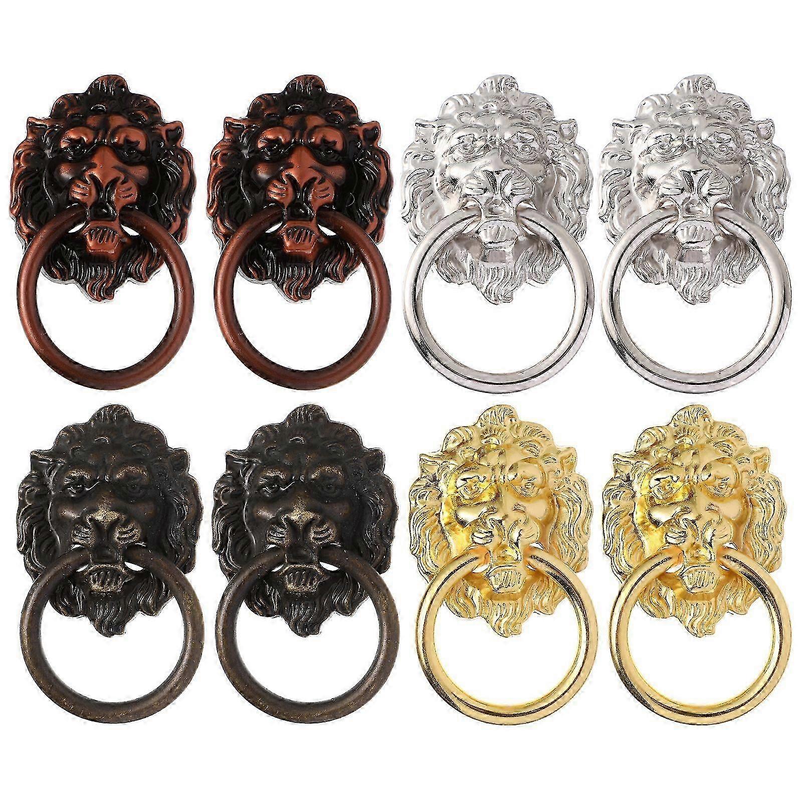 Metal Cabinet Knobs Lion Head Cupboard Wardrobe Drawers Antique Style Zinc Alloy 6.5X4cm 8Pcs
