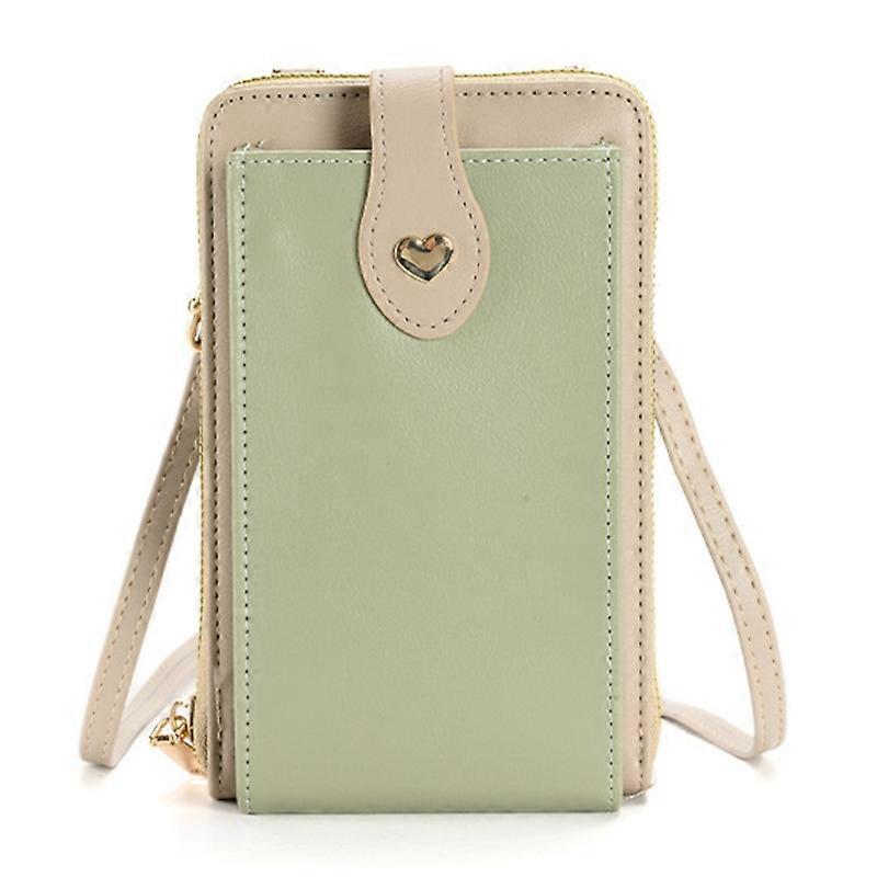 6638 Color Splicing Women PU Leather Cell Phone Storage Crossbody Shoulder Bag-Apricot