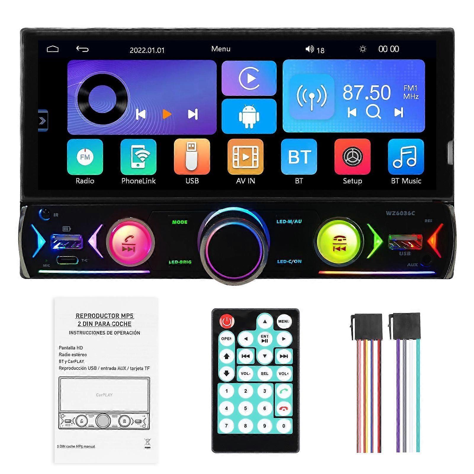 6.86 Inch Car Stereo BT MP5 Player FM Radio Support Hands~Free Calling U~Disk/AUX~in Phone Interconnection Mirror Phone Link Reversing Assist Steering