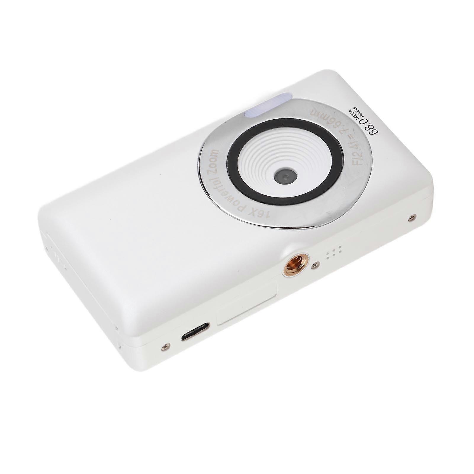 Portable Compact Camera White 68MP 4K 16x Zoom 2.7 Inch HD Display Autofocus Digital Compact Pocket Camera for Travel Growth Record Item Type: Compact Digital Camera Material: ABS Weight: Approx. 183g / 6.46oz File Format: JPEG.AVI Image Resolution: 68M (Maximum) Video Resolution: 4K; FHD; HD Focal Length: F=7.66mm Aperture: F/2.4 Image Ratio: 16:9 Zoom Magnification: 16x Digital Zoom Auto Focus: Support Battery Type: Lithium Ion Number of Batteries: 1 Battery Capacity: 750mAh (Built In) Storage Support: Support up to 128G Standard Storage Card (Excluded) Fill Light: Support Menu Language: Multi Language Charging Interface: Type C Display Screen: 2.7 Inch TFT Screen USB Version: 2.0 Bottom Interface: 1/4 Threaded Hole Color: White