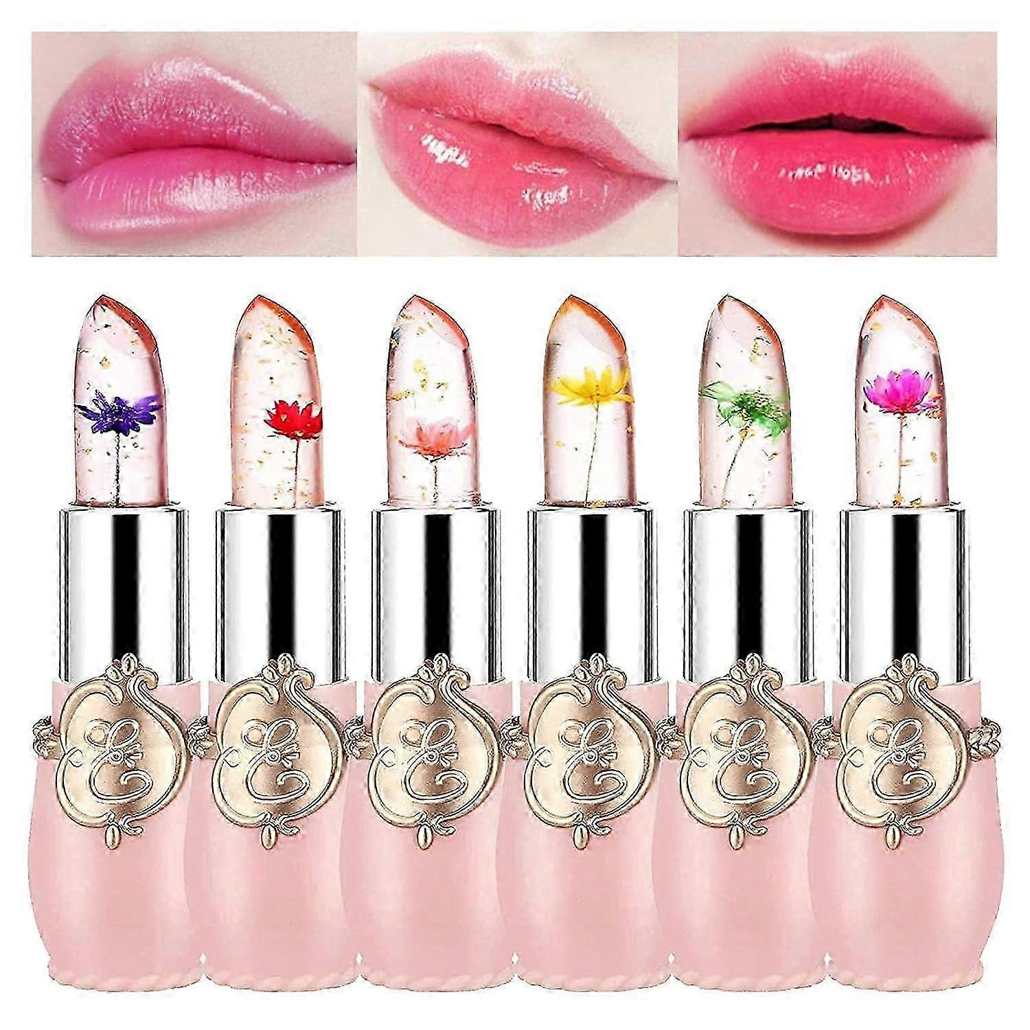 6colors Crystal Flower Jelly Lipstick, Color Changing Lip Gloss Long Lasting Moisturizing Lip Stain